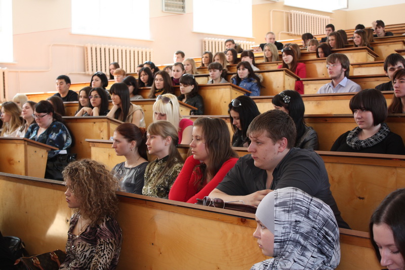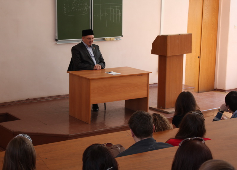 Сегодня в одной из аудиторий Саратовского государственного социально-экономического университета  прошла встреча студентов с муфтием области Мукаддас-хазратом Бибарсовым.