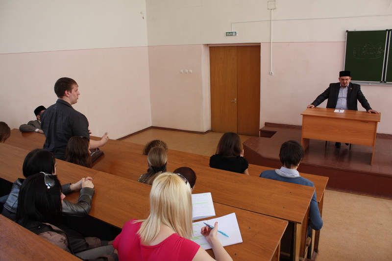 После небольшого вступления, студентам предоставили право задать интересующие вопросы, а их у любознательной аудитории оказалось не мало. «Как относиться к тому, что говорят о мусульманах в СМИ?», «Каково отношение к женщинам в Исламе?», «Как Ислам относится к межрелигиозным бракам?»… А одного из студентов заинтересовал порядок расположения сур в Коране – по убыванию.