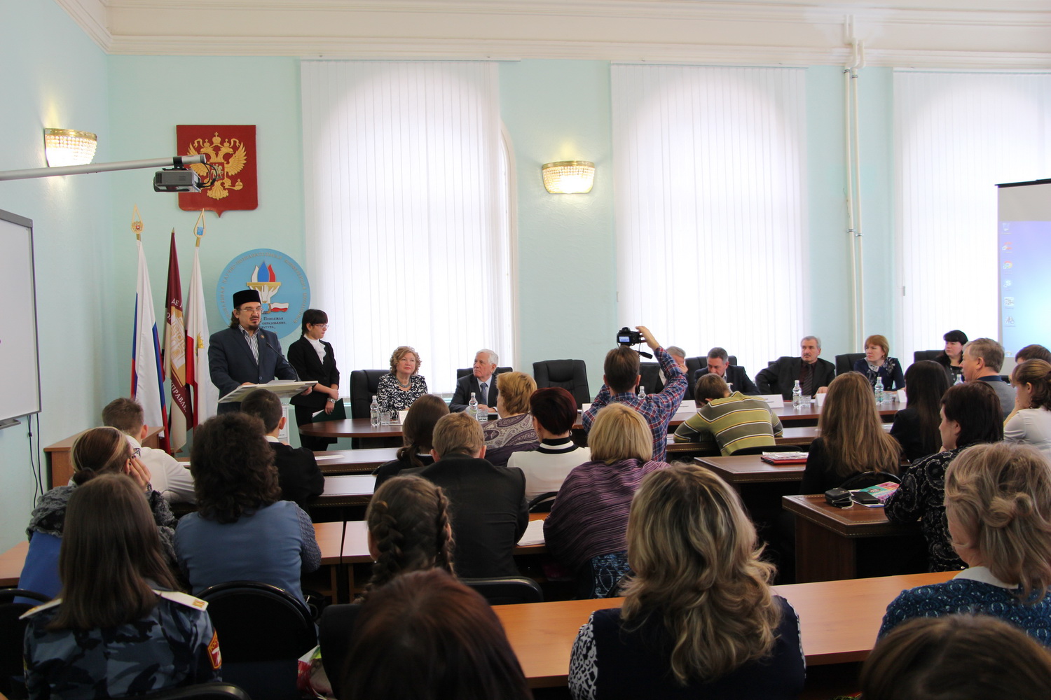 В работе пленарного заседания приняли участие сопредседатель Совета муфтиев России, глава ДУМ региона Мукаддас-хазрат Бибарсов, министр-председатель комитета общественных связей и национальной политики Саратовской области Борис Шинчук, директор Поволжского института управления Виктор Чепляев, представители областного министерства и городского комитета образования, преподаватели и учащиеся школ губернии.