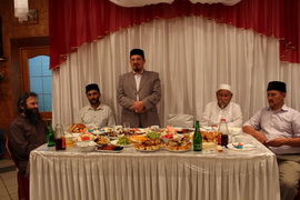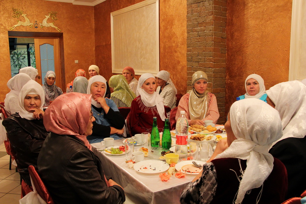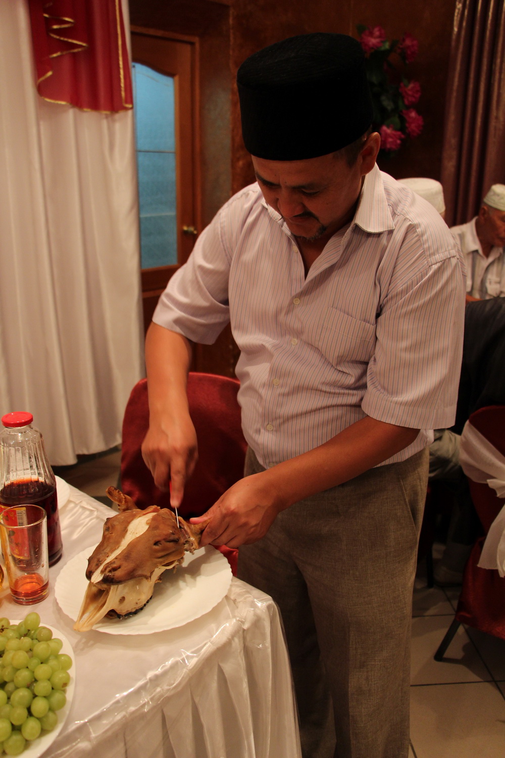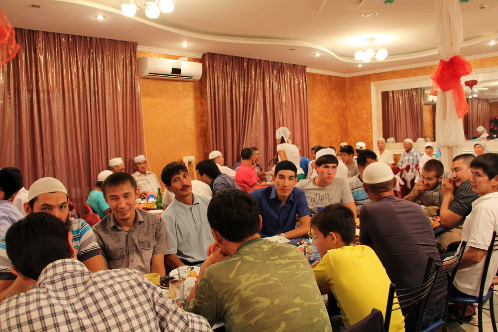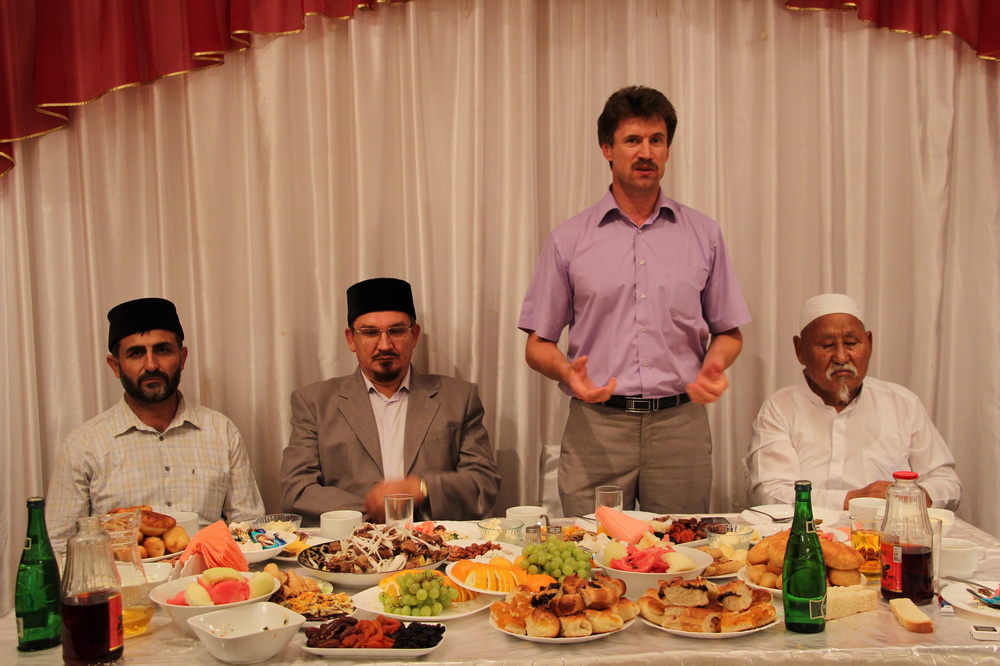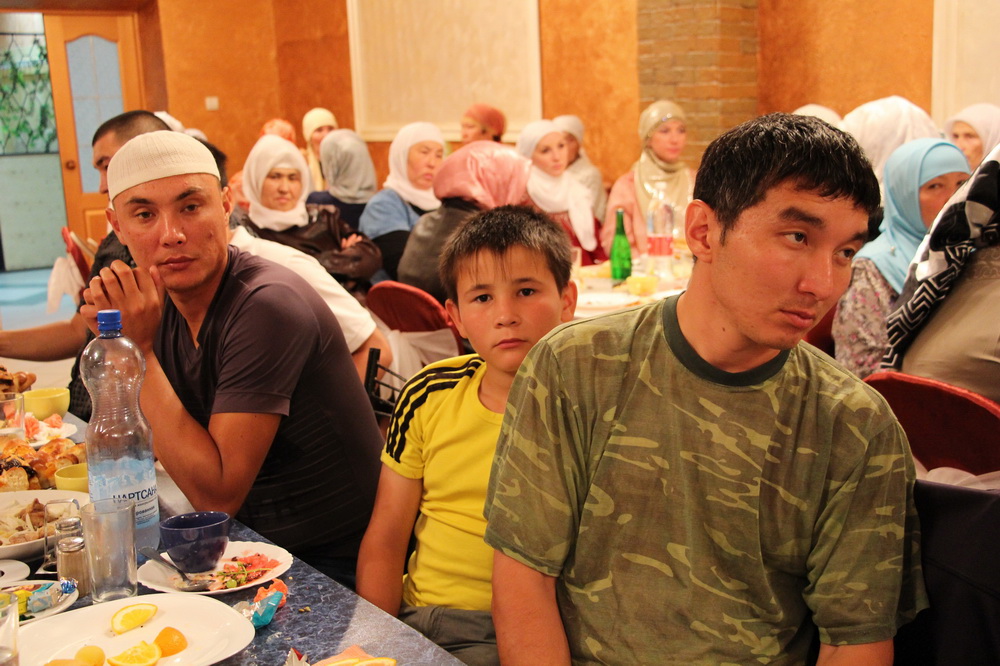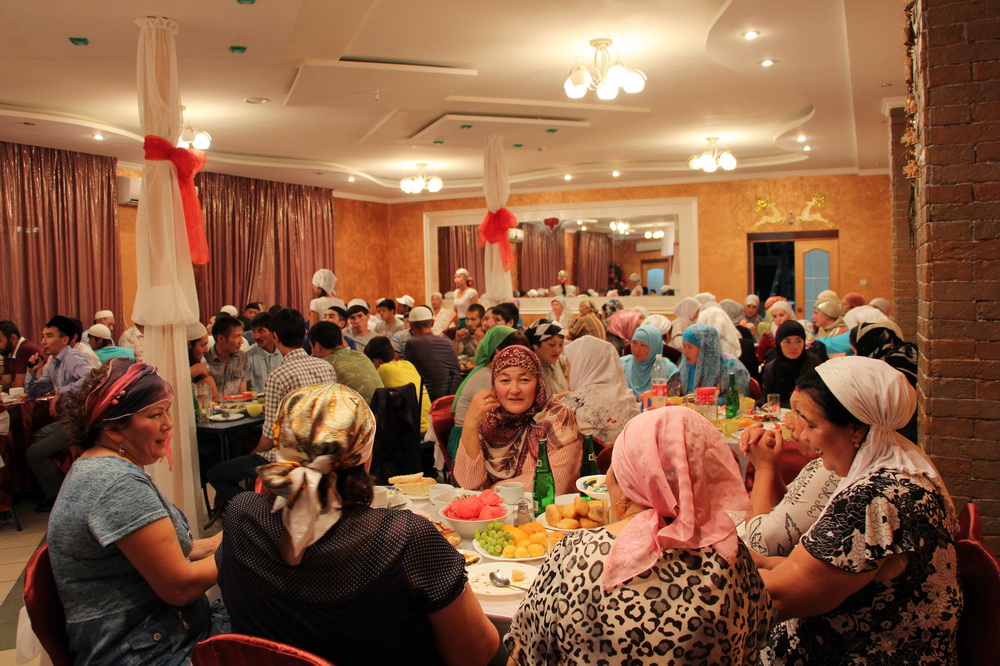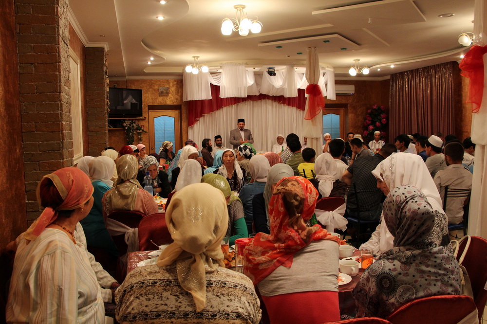 Коллективный ифтар проходил в местном кафе, куда постящиеся пришли после совершения вечернего Магриб-намаза. Их угощали различными блюдами мусульманских народов, а почетным гостям предложили отведать баранью голову.