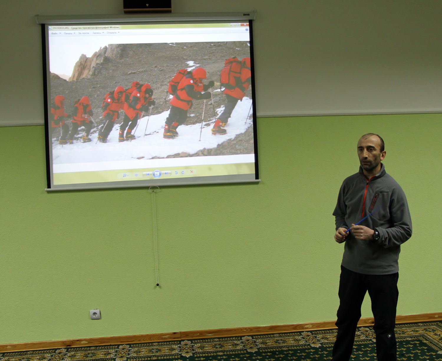 Вчера Азнор-хаджи принял участие в первой в 2014 году встрече членов Президиума Общественного совета ДУМСО и активистов общины. На собрании верующих альпинист рассказал о восхождении на Эверест (8848 м), который в 2012 году осуществила команда во главе с Сергеем Богомоловым.
