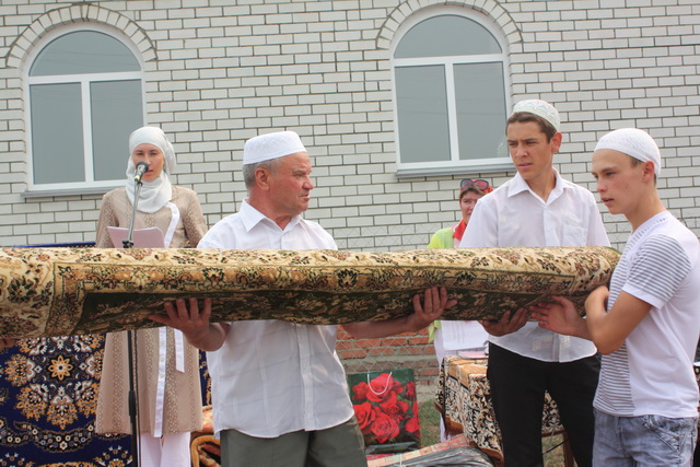 От всех присутствующих гостей для мечети были переданы подарки: ковры и Священный Коран.
