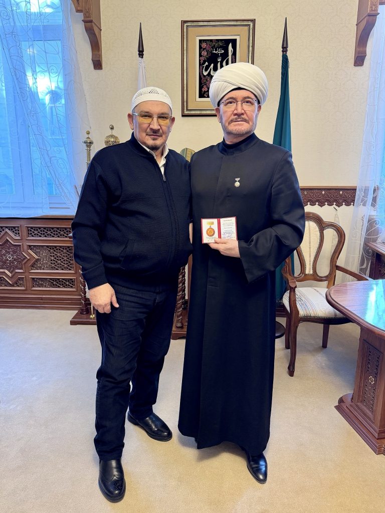 В завершение встречи глава ДУМП передал шейху Гайнутдину памятную юбилейную медаль известного саратовского мецената Эдварда Арзуманяна, которой он был ранее награжден в Саратове.