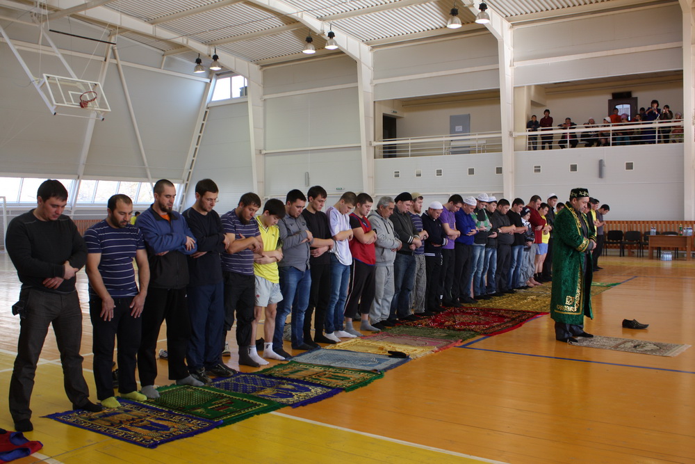 Приближался обеденный Зухр-намаз. На площадке ФОКа были расстелены коврики и футболисты под руководством имама Хариса-хазрата Тугушева совершили коллективную молитву.
