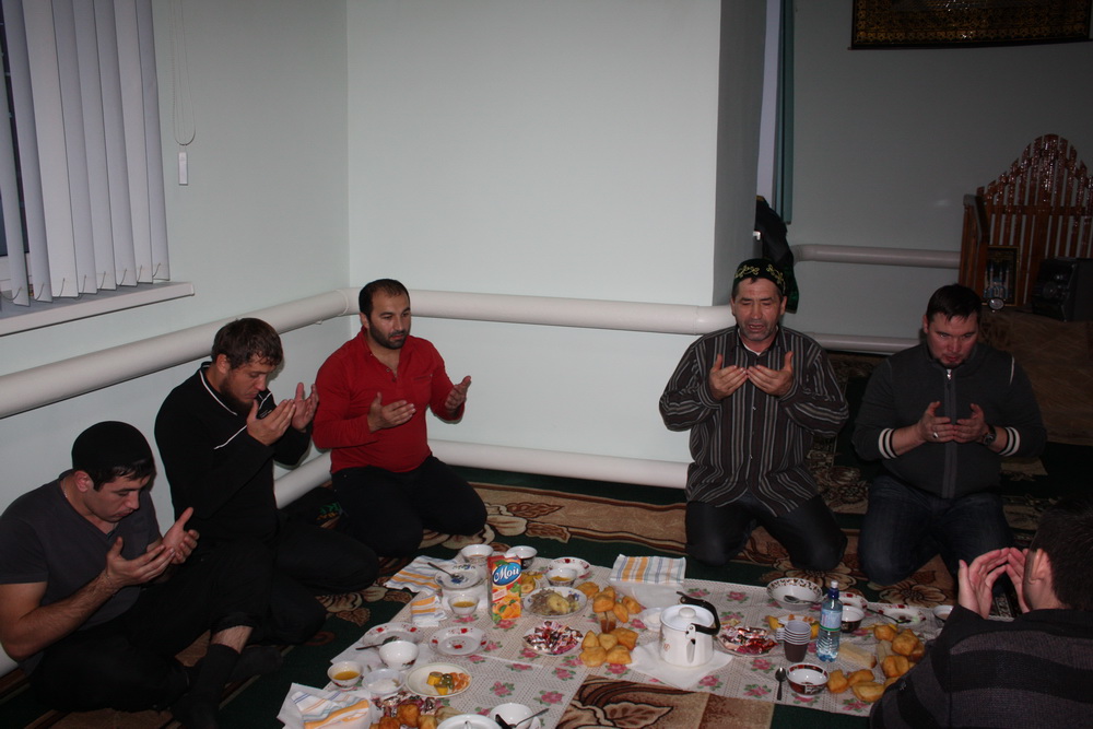 Общение мусульман продолжилось в местной мечети, где гостей угощали праздничными блюдами. Имам Харис-хазрат Тугушев напомнил участникам турнира о братстве в Исламе, призвал каждого прощать обиды на поле и всегда помнить о том, что мусульман объединяет вера в Единого Творца и следование пути пророка Мухаммада (мир ему).