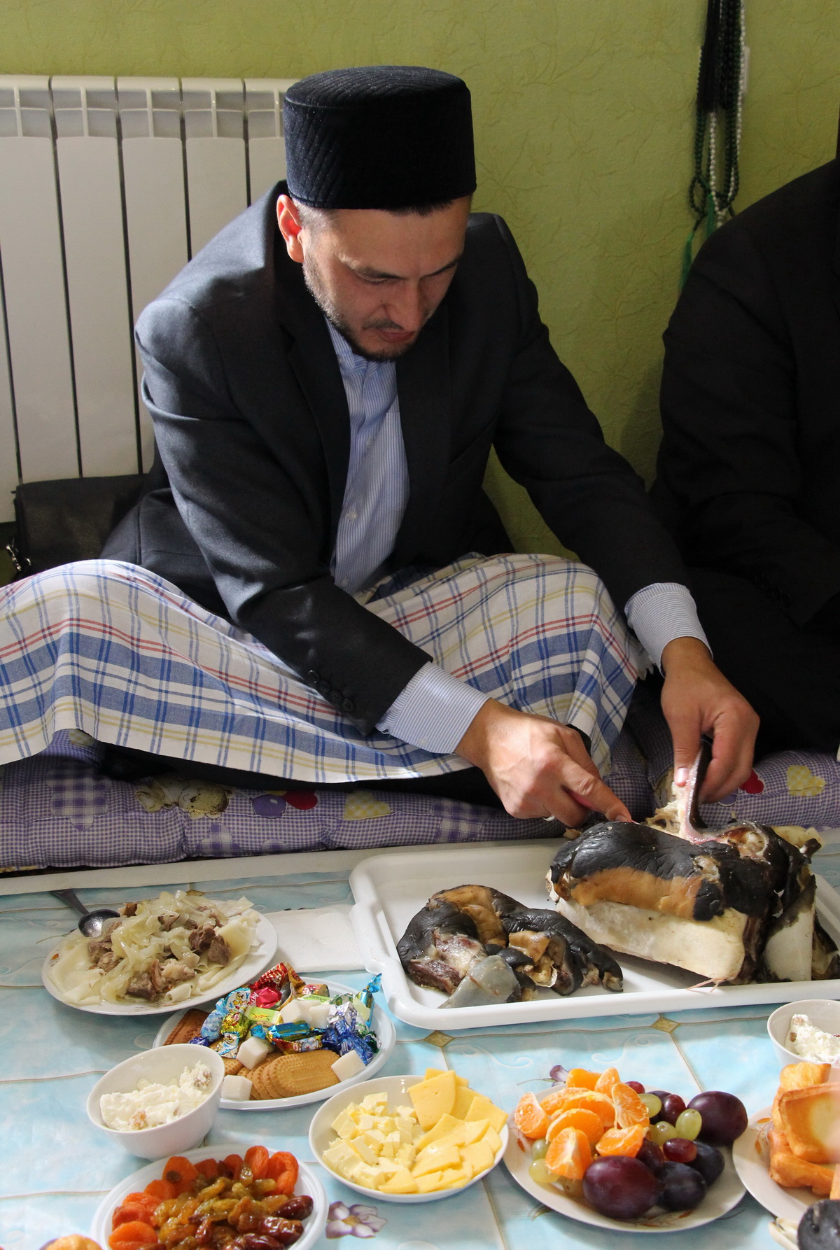 После выступления директора саратовского медресе участники меджлиса прочитали аяты Священного Писания и совершили Дуа, моля Господа принять курбан мусульман, даровать Свою милость и благополучие. Затем собравшиеся приступили к трапезе, отведав казахское национальное блюдо бешбармак, приготовленное из мяса жертвенного животного.