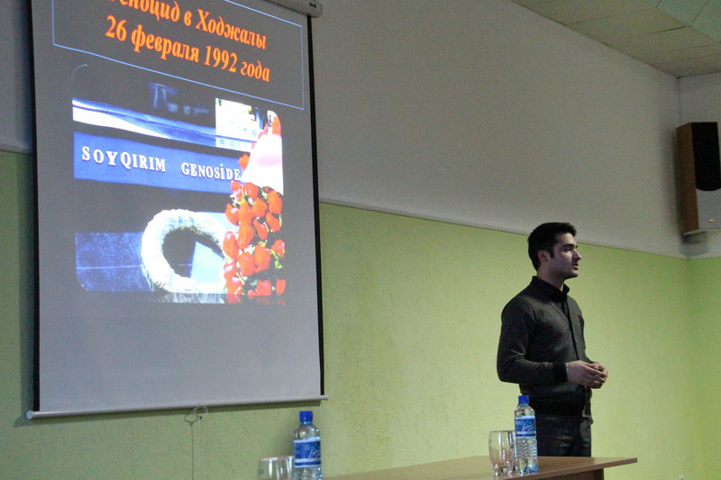Кроме этого один из активистов АМОР Эльгюн Аскерзаде выступил с докладом, рассказав об истории города Ходжалы и ходе событий в ночь с 25 на 26 февраля 1992 года.