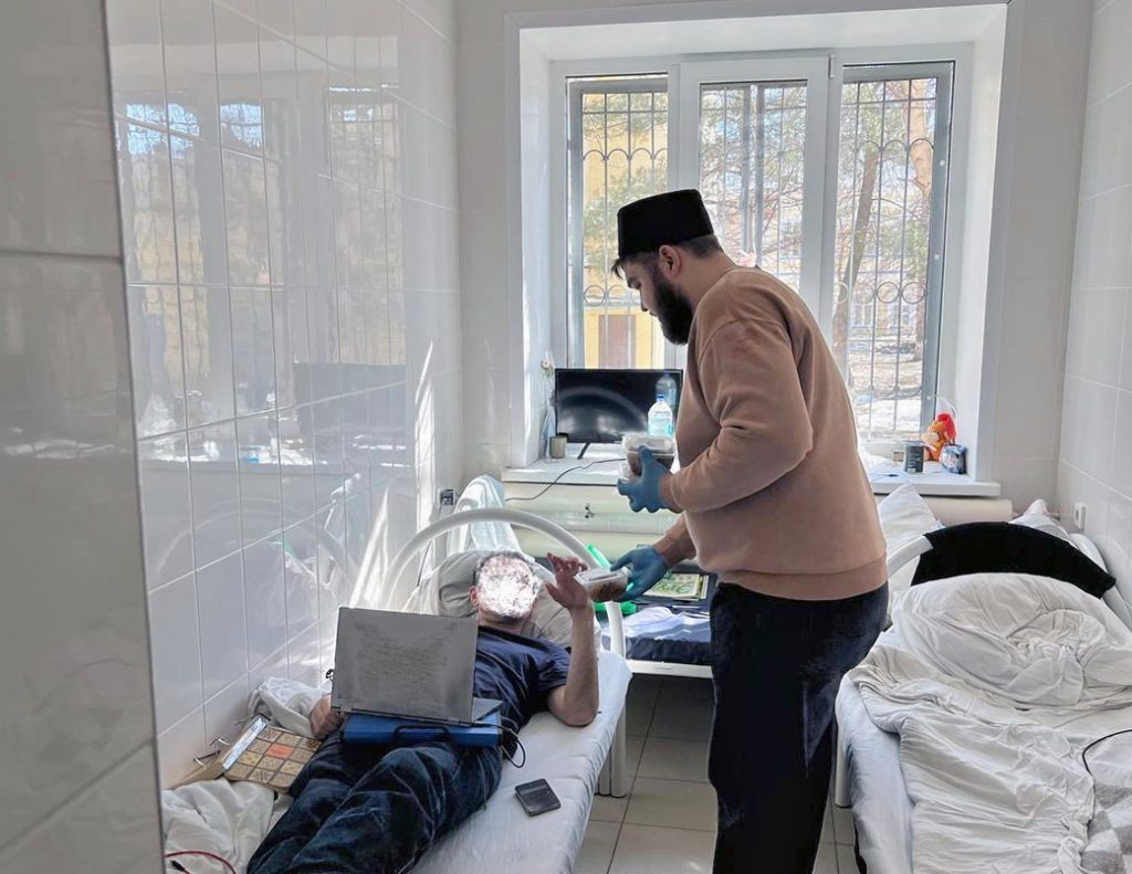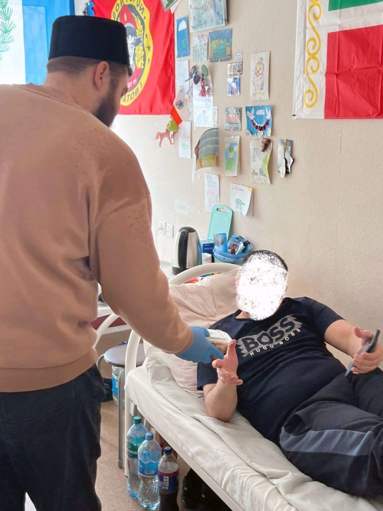 Посетители обошли палаты бойцов, исповедующих Ислам, беседуя с ними и делясь атмосферой праздника завершения поста. В качестве угощения военнослужащим были переданы горячий плов и свежая выпечка.