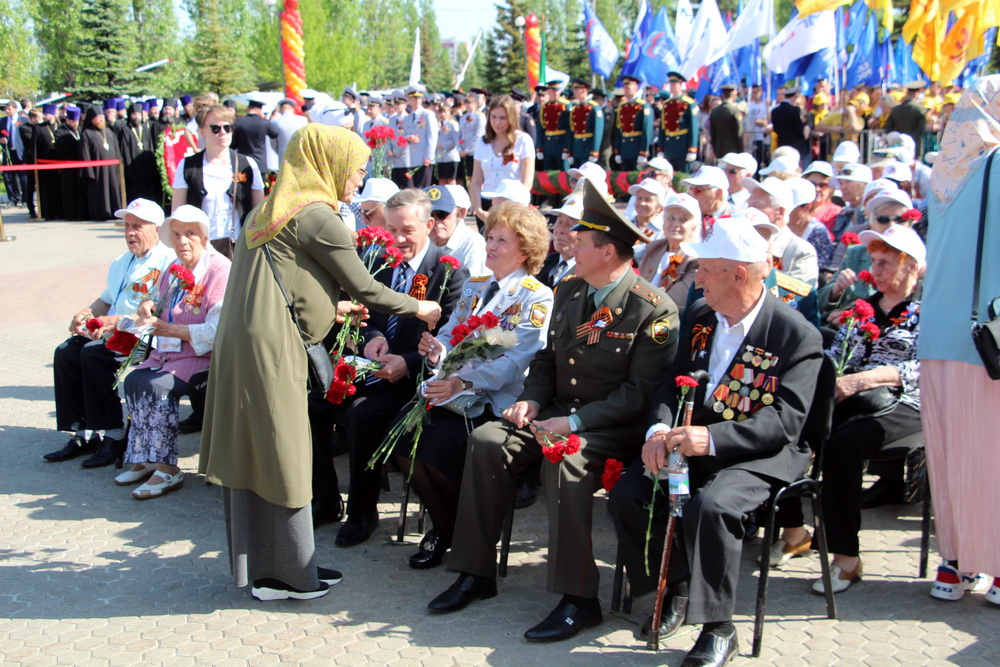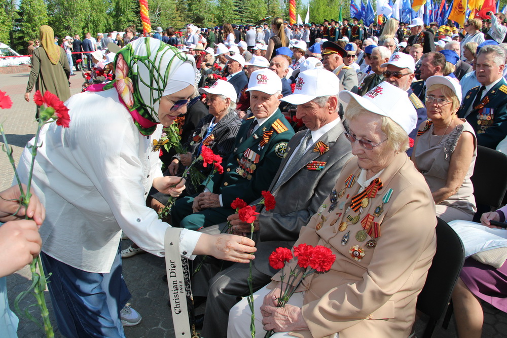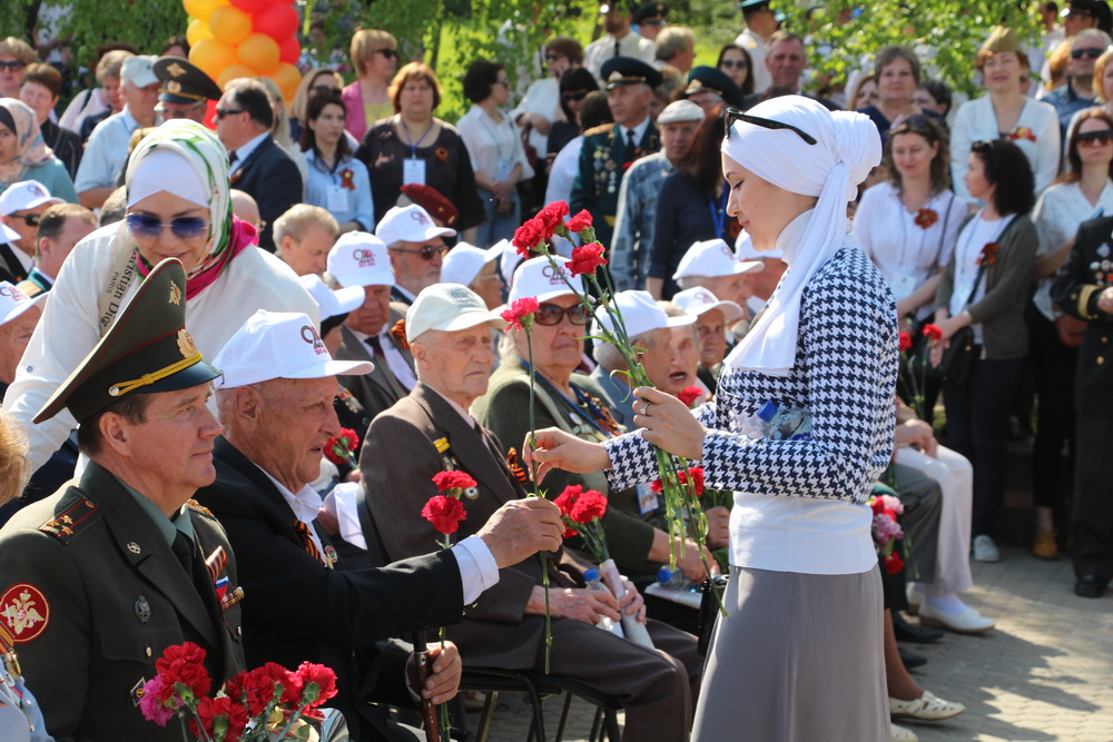 Также праздничное мероприятие в Парке победы посетили общественные организации «Возрождение» и «Родник», активистки которой раздали гвоздики ветеранам Великой Отечественной войны.