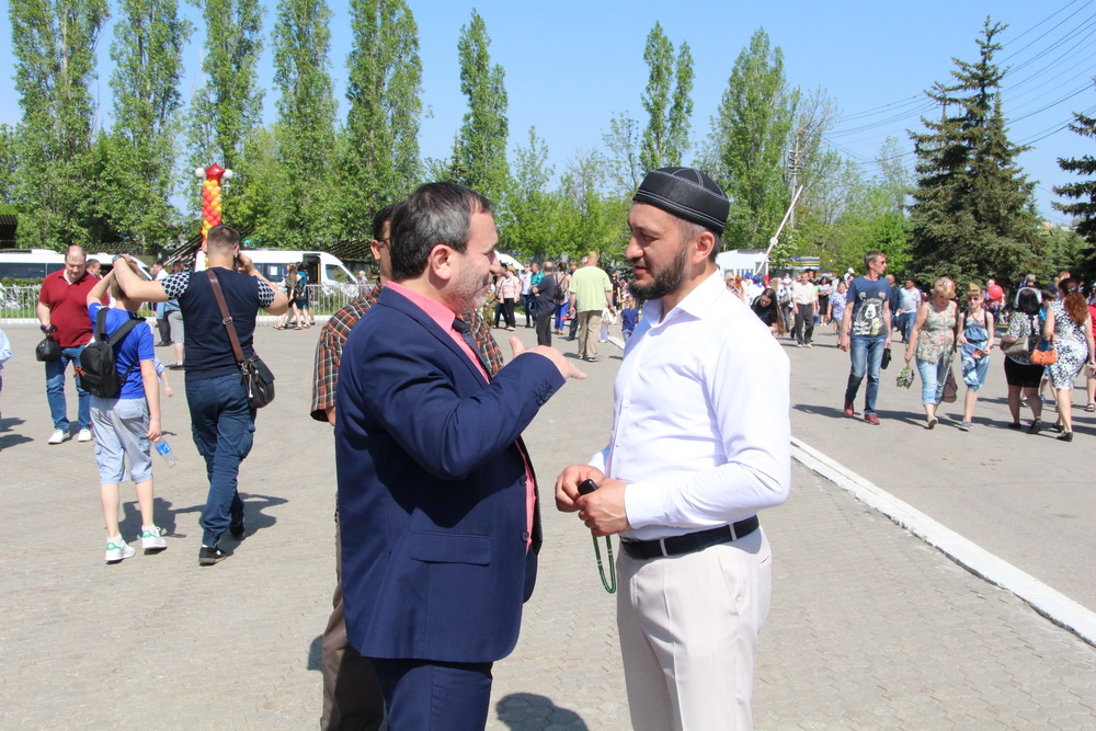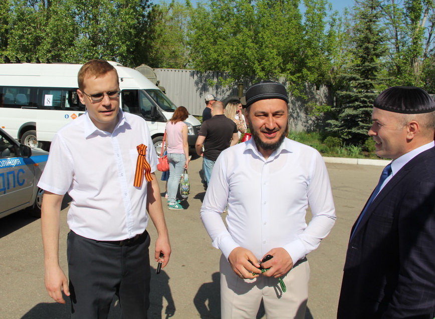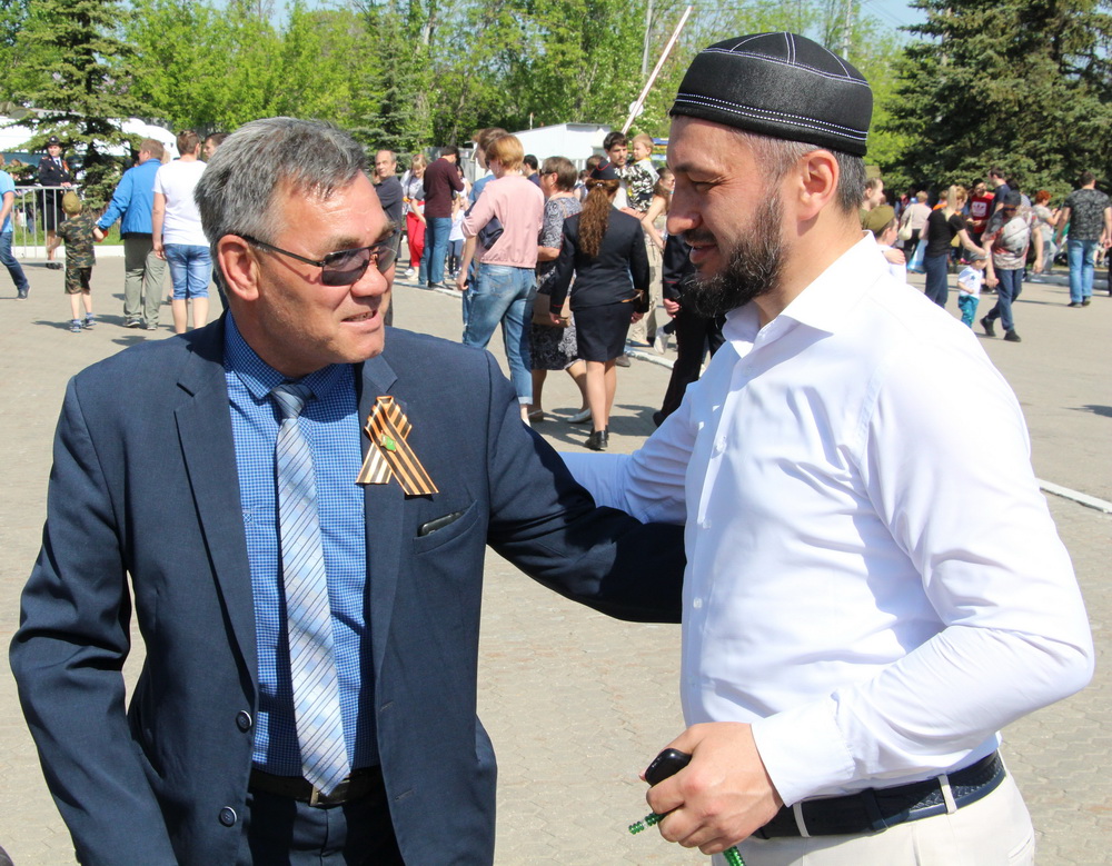 Поздравить соотечественников и участников ВОВ с 74-й годовщиной Победы пришёл исполняющий обязанности муфтия Саратовской области Расим-хазрат Кузяхметов. По его словам, необходимо помнить о тех страшных военных событиях и всеми силами стараться не допустить повторения подобной трагедии человечества. Он отметил, что очень важно воспитывать современное поколение на подвигах предков и ценить мир и согласие между людьми.