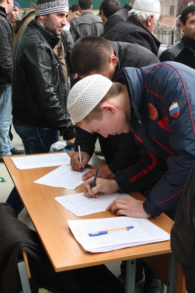 Сегодня в саратовской Соборной мечети после пятничной молитвы состоялся сбор подписей против установки языческого идола «Хранительница» на территории Булгарского заповедника в Татарстане.