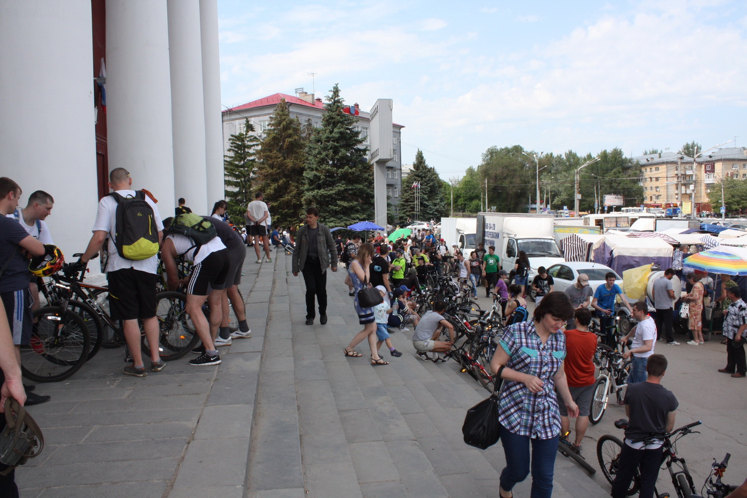 Сотни горожан от мала до велика собрались на площади В.И.Ленина, откуда был объявлен старт велопробегу в 15 километров.