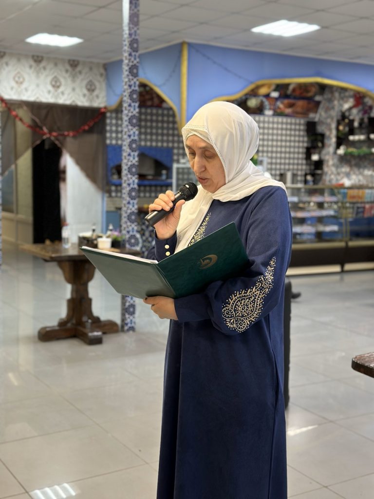 Перед трапезой с приветствием к мусульманкам обратился заместитель муфтия ДУМ региона, имам-мухтасиб Ильяс-хазрат Юнкин. Он напомнил о ценностях Рамадана, о том, что в Исламе Всевышний Аллах объединил верующих из разных народов и сделал их братьями и сестрами по вере, рассказал о важности поклонения в Священный месяц, его особенностях, в частности, о Ночи Лайлят уль-Кадр.