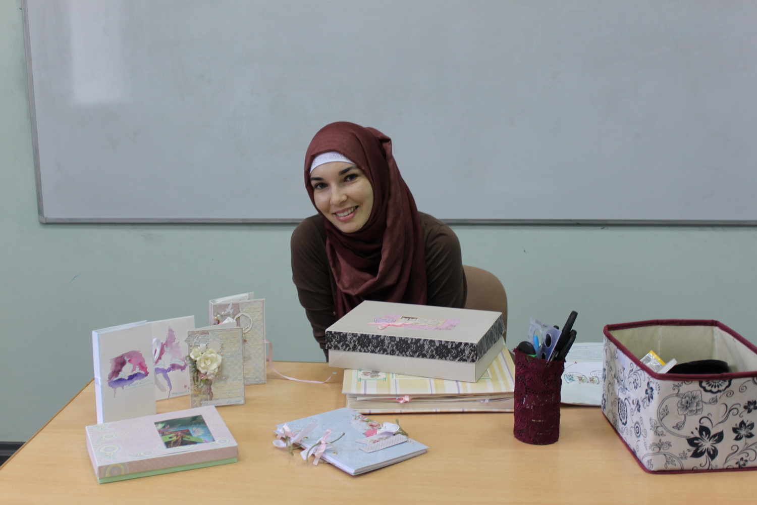 Опытный хендмейкер активистка общественной организации «Родник» Люзия Акчурина вот уже полтора года создает прекрасные поделки своими руками. И хотя сама мастер называет себя «еще ученик», все же девушка с радостью поделилась знаниями с мусульманками Саратова.