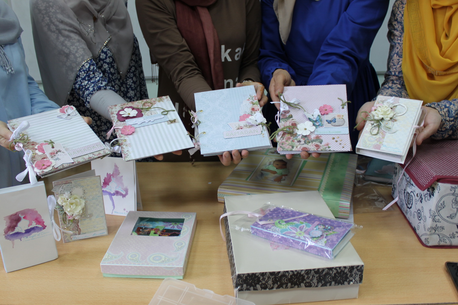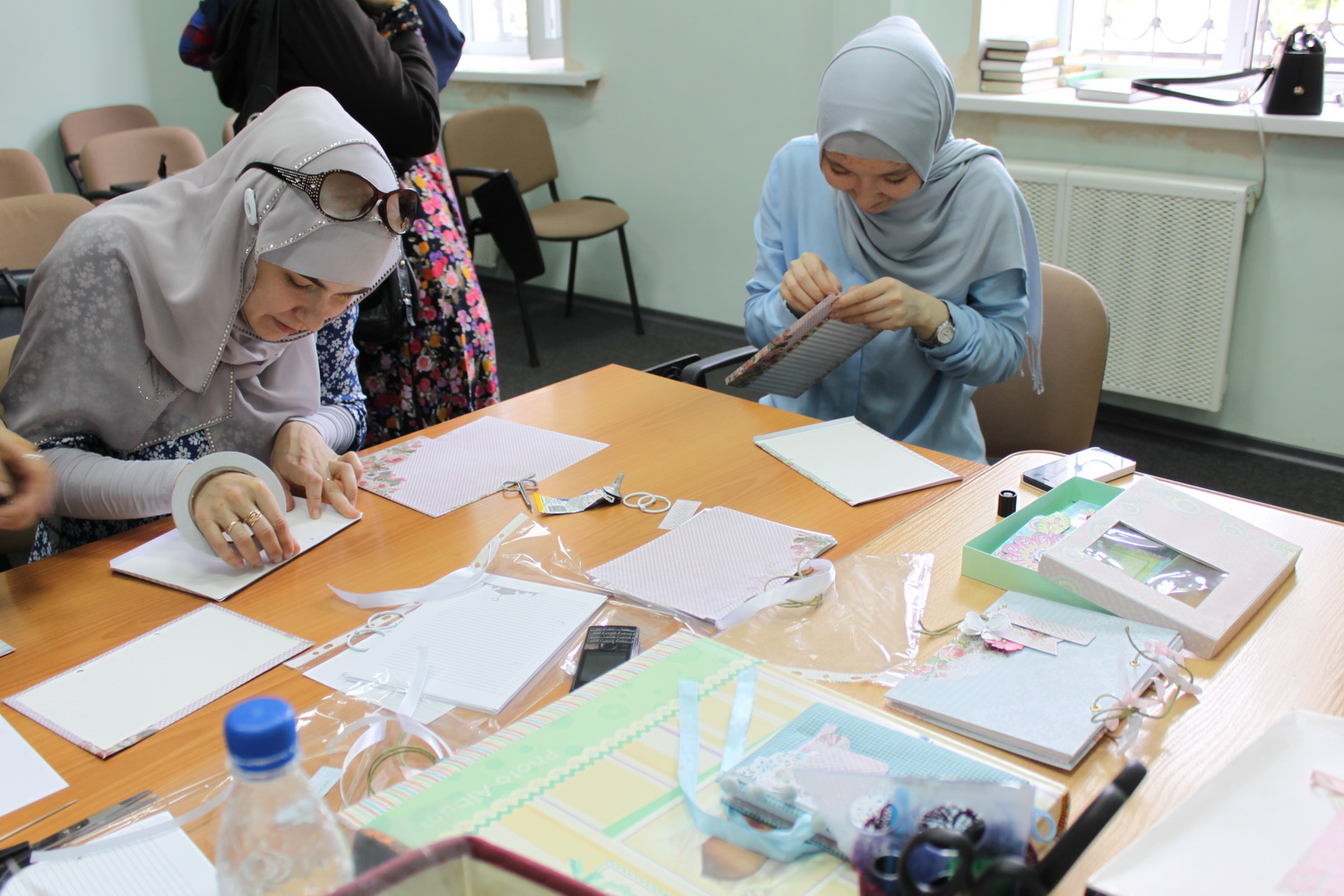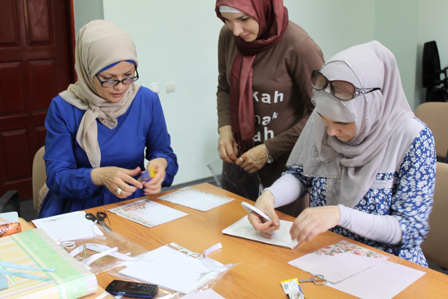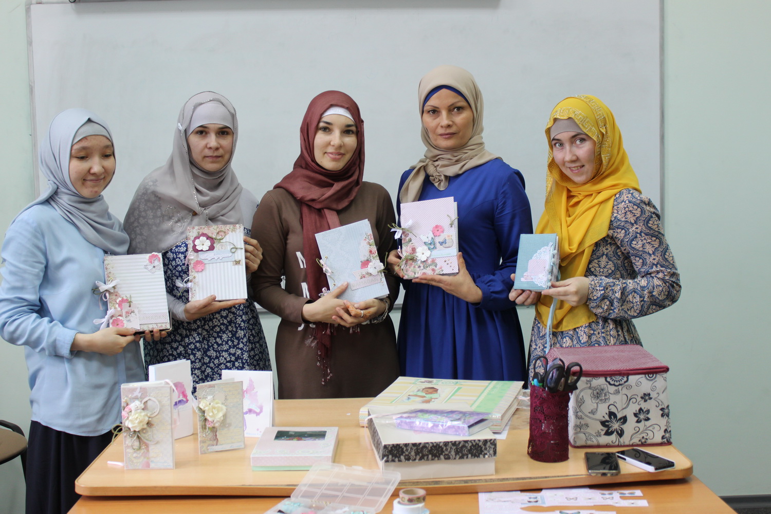4 июня она провела мастер-класс для прекрасной половины. Для желающих освоить азы скрапбукинга Люзия рассказала об особенностях этого искусства и предложила собственноручно смастерить блокнот к Рамадану. Работа закипела: в ход пошли клей, бумага, цветы, бусинки и даже молоток.