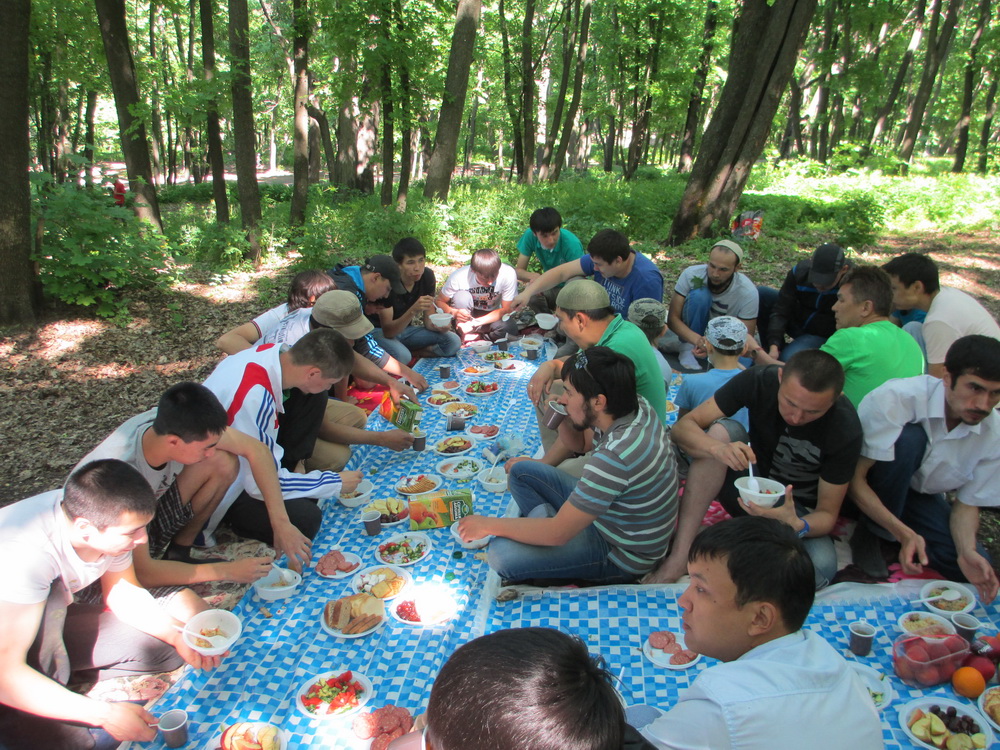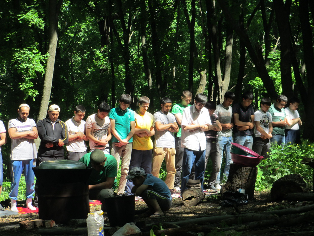 Пока одни готовили пищу на костре, другие гуляли в лесу, общались с единоверцами и наслаждались ясной погодой. С наступлением Зухр-намаза мусульмане совершили коллективную молитву, затем сыграли в волейбол, и, разбившись на несколько команд, устроили футбольный мини-турнир на лесной опушке.