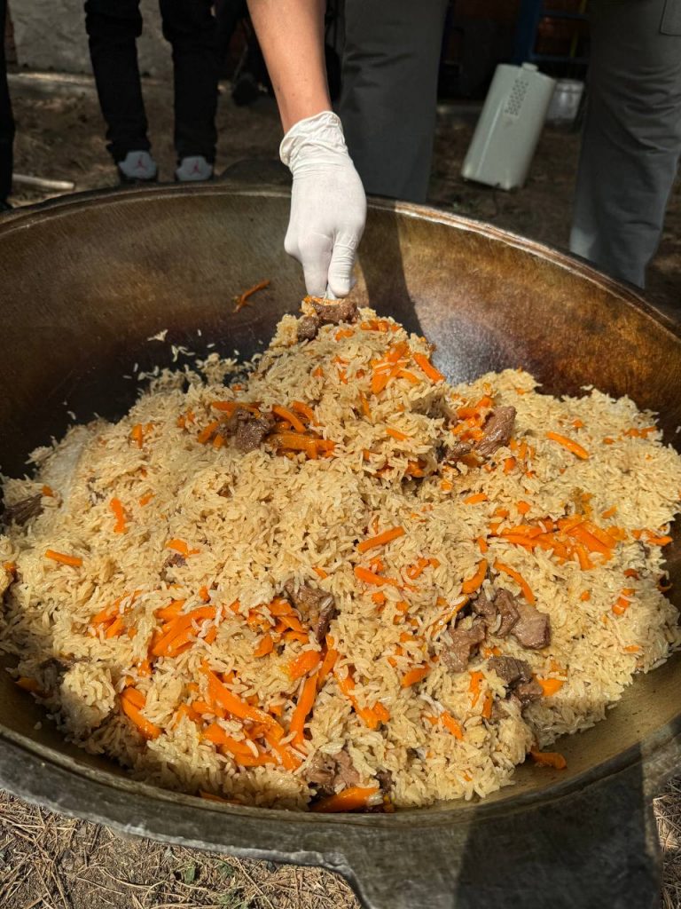 Выполнив основную часть плана, ребята совершили коллективный Зухр-намаз и восполнили силы, отведав приготовленный на костре узбекский плов. Кстати, для участников экопикника было важное условие — вход только со своими чашками и тарелками: никакой одноразовой посуды и пластика!