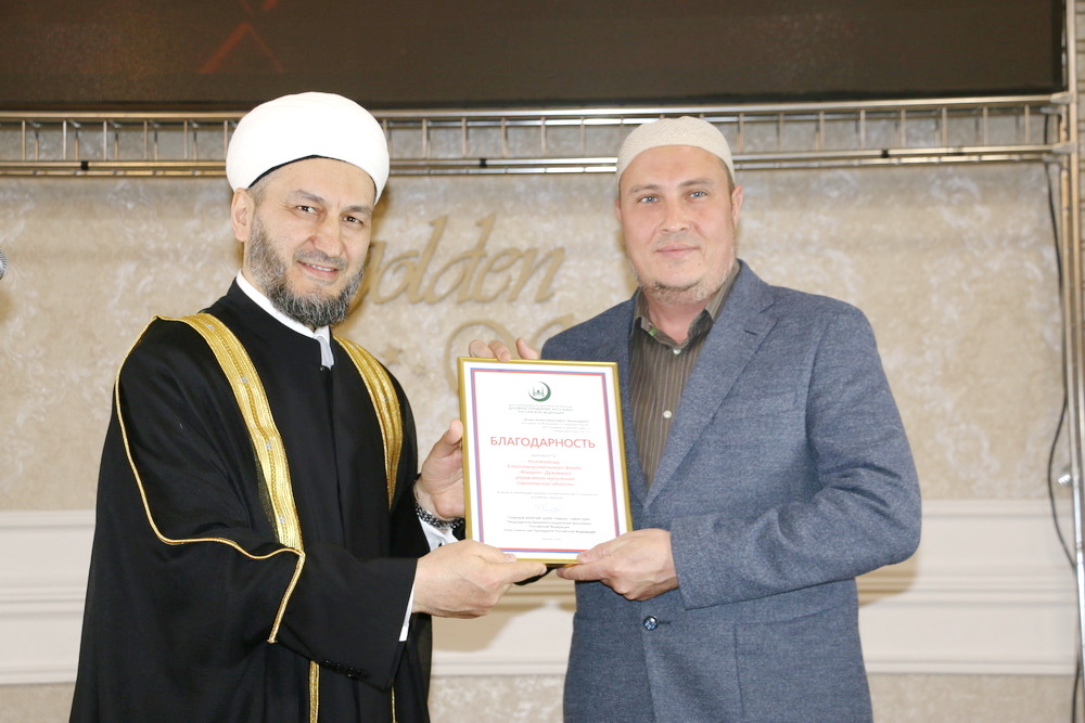 Также благодарность от шейха Равиля Гайнутдина была выражена члену Президиума ДУМСО, имаму-мухтасибу Саратовского района Фанилю-хазрату Бибарсову, коллективу благотворительного фонда «Юмарт» за «вклад в реализацию духовно-просветительских и социальных исламских проектов».