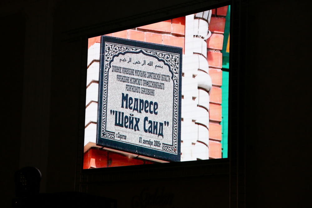 После чтения аятов Священного Корана были продемонстрированы видеоролики о саратовском медресе «Шейх Саид» и его выпускниках. Отмечалось, что с начала своей деятельности знания о своей религии здесь получали более 1,5 тысяч человек из разных регионов нашей страны. Сегодня медресе расположено в здании Саратовского Исламского комплекса, где нет полноценных условий для очного отделения и проживания иногородних студентов.