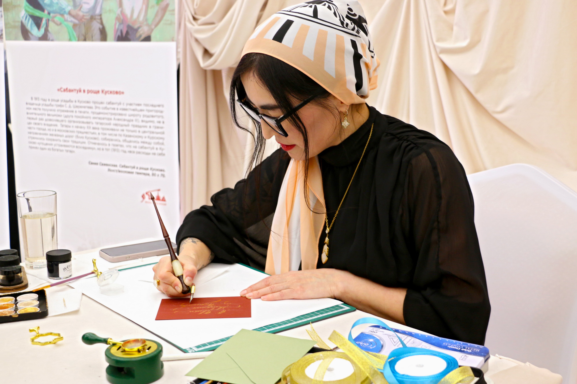 В ходе мероприятия каждый мог ближе познакомиться с иллюстрациями из книги «Москва: город вязевый», а также получить приятный подарок. В этот особый вечер российский каллиграф Ольга Есир изготавливала открытки с поздравлениями. Гости ифтара получали в подарок уникальную карточку, упакованную в конверт ручной работы с сургучной печатью.
