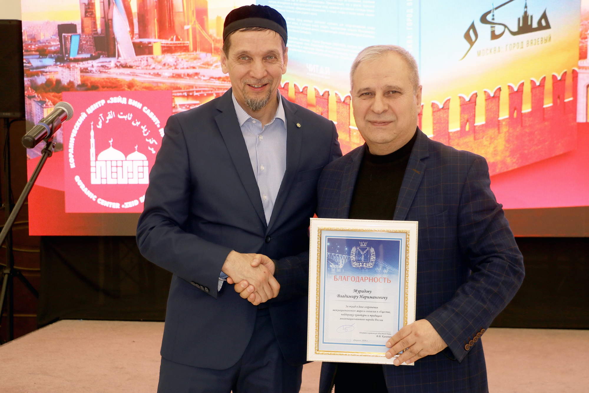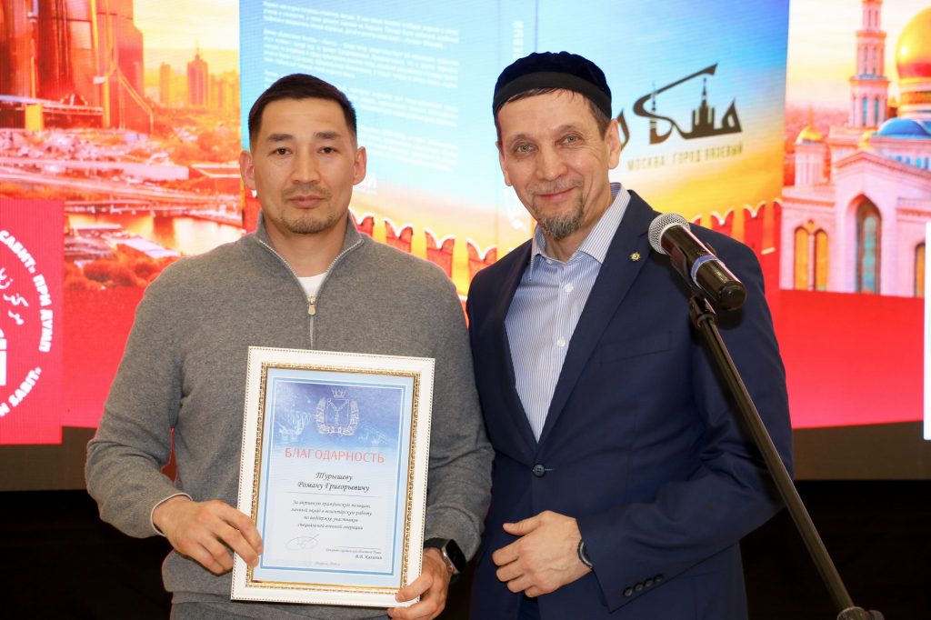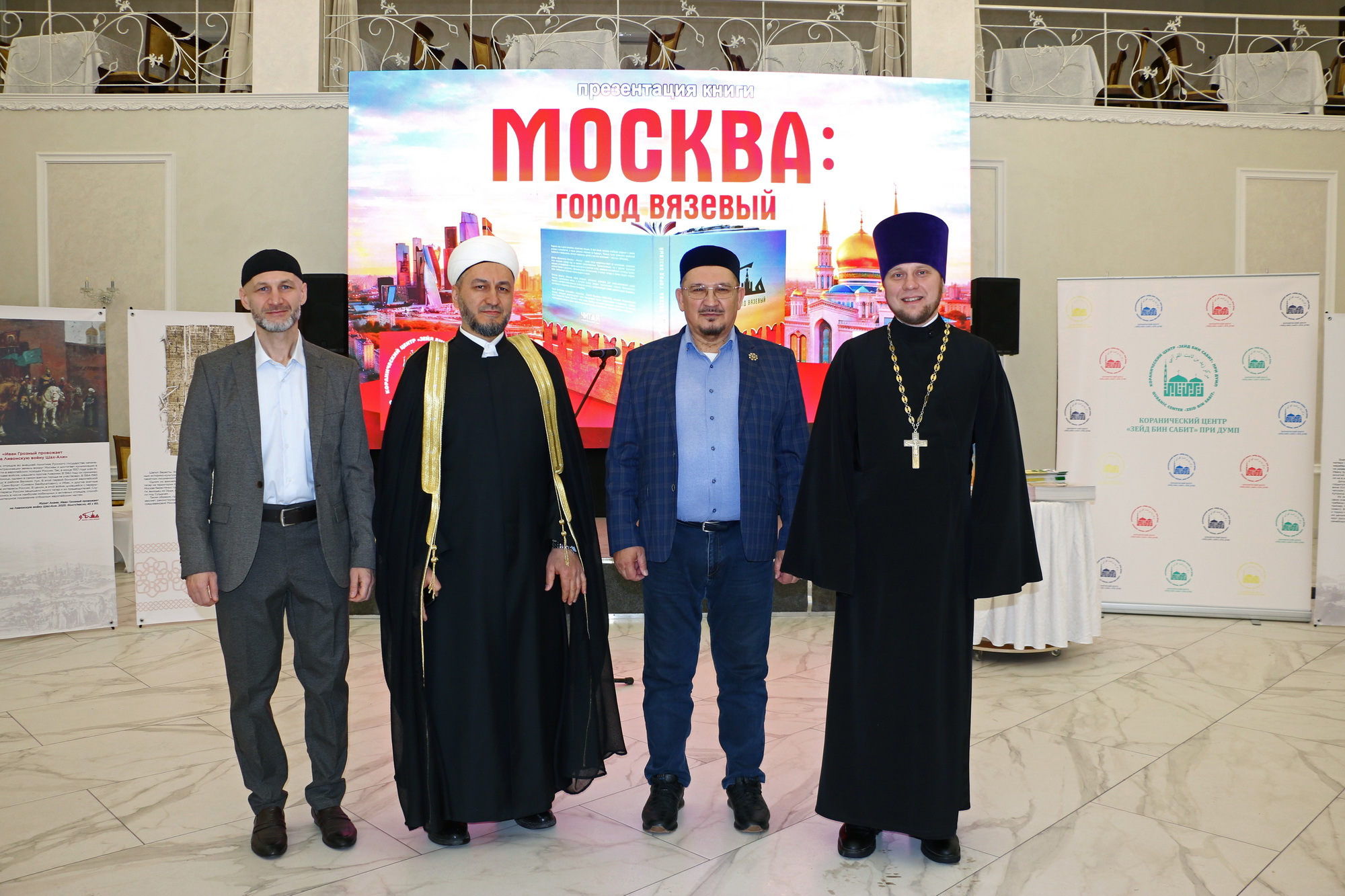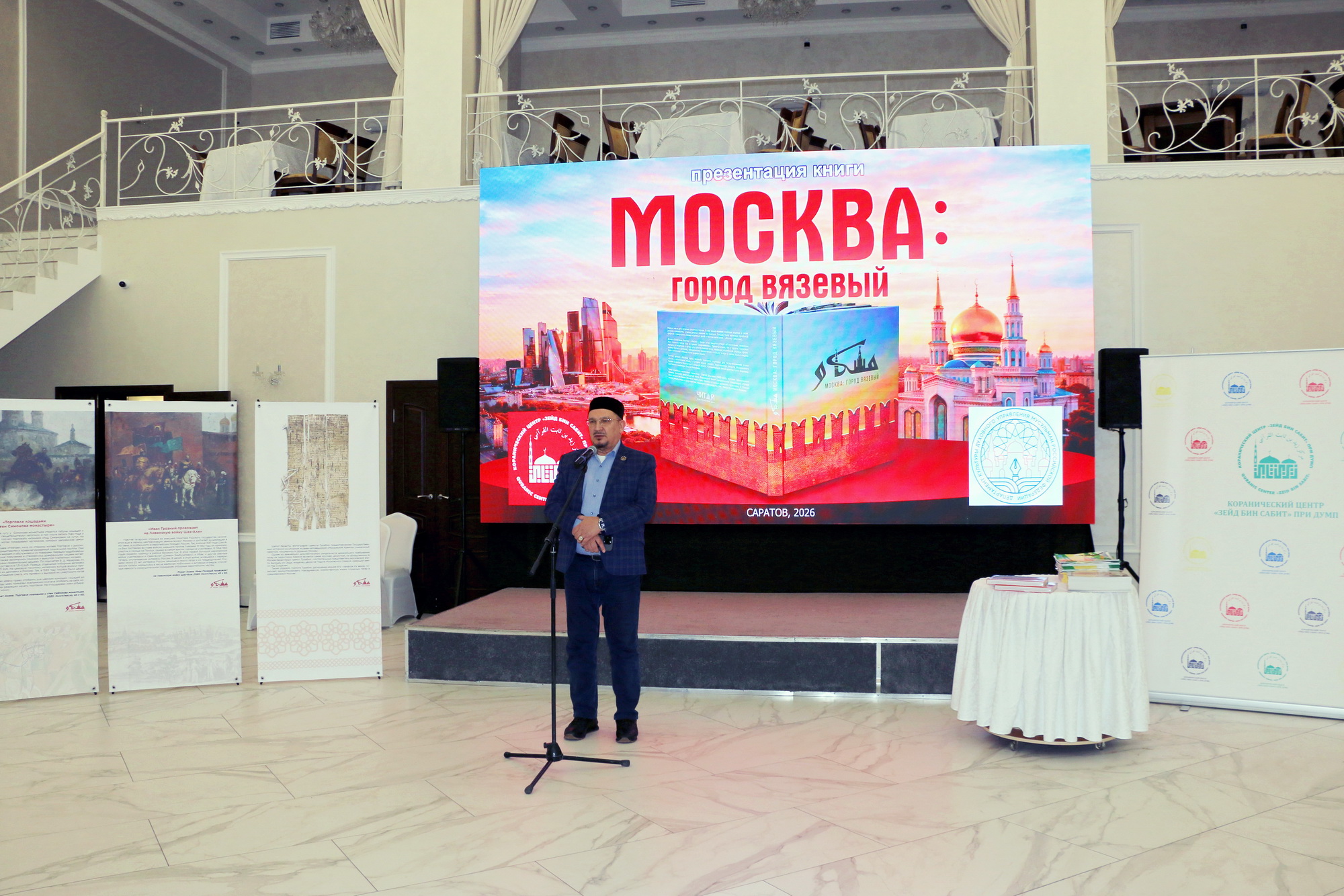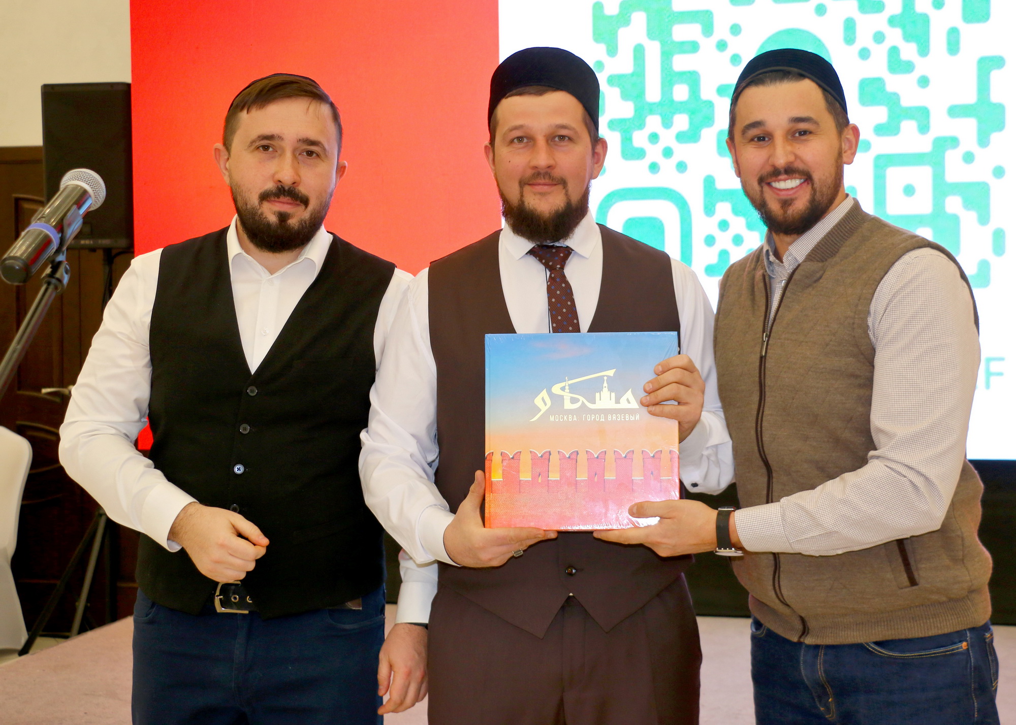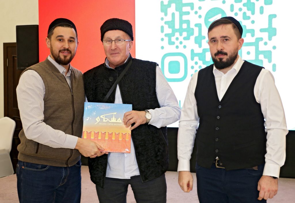 После чтения аятов Священного Корана состоялась презентация книги «Москва: город вязевый». Авторы – заместитель председателя Духовного управления мусульман РФ, руководитель Департамента культуры ДУМ РФ, заслуженный работник культуры РТ Ренат-хазрат Абянов и историк, ведущий радио «Вести ФМ» Марат Сафаров. Книга выпущена издательским домом «Читай» в 2025 году по благословению председателя ДУМ РФ, главного муфтия шейха Равиля Гайнутдина.