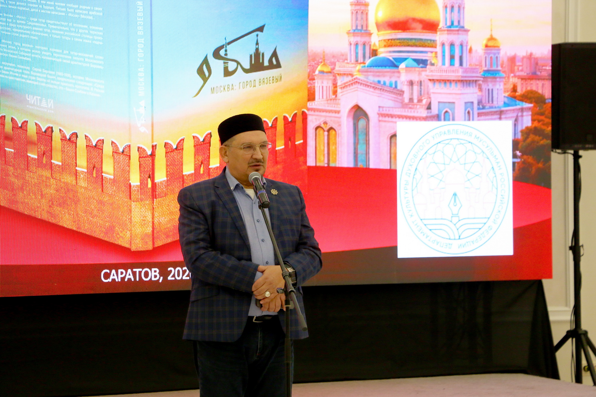 Ренат-хазрат Абянов передал собравшимся слова приветствия духовного лидера мусульман РФ и поблагодарил саратовских мусульман за теплый прием и работу, которая проводится во имя популяризации духовных ценностей. Затем московский гость перешел к презентации книги «Москва: город вязевый». «Она стала продолжением этнографических трудов, которые ранее вышли в свет в нашем издательстве по благословению главного муфтия шейха Равиля-хазрата Гайнутдина. До этого были книги, посвященные касимовским, темниковским и костромским татарам, затем были исследования, связанные с Московским регионом. Мы с соавтором Маратом Сафаровым родились в Москве, поэтому для нас это очень ценно, важно и ответственно рассказать людям, когда появились мусульмане в российской столице, кем они были. Героями нашей книги являются люди разных профессий, родившиеся в Москве, продолжавшие ощущать свою причастность к мусульманской цивилизации, к татарскому и другим народам», — отметил заместитель председателя Духовного управления мусульман РФ, руководитель Департаменты культуры ДУМ РФ.