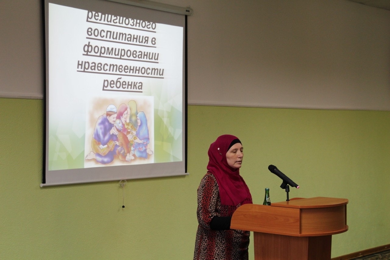 Работа собрания началась с доклада студентки 4 курса Ирины Магомедовой «Значение религиозного воспитания в формировании нравственности ребенка». По ее мнению, основа воспитания детей, несомненно, закладывается в семье, а дополнительное развитие дают преподаватели школ. В связи с этим она указала на большое значение исламских образовательных учреждений (мактаб, медресе), которые знакомят ребят с Исламом, одновременно прививая к ним нравственное поведение. Также особое внимание в роли воспитания подрастающего поколения докладчик уделил детским лагерям, а именно оздоровительной смене «Муслим», ежегодно собирающая сотни детей в живописном уголке Базарно-Карабулакского района Саратовской области.