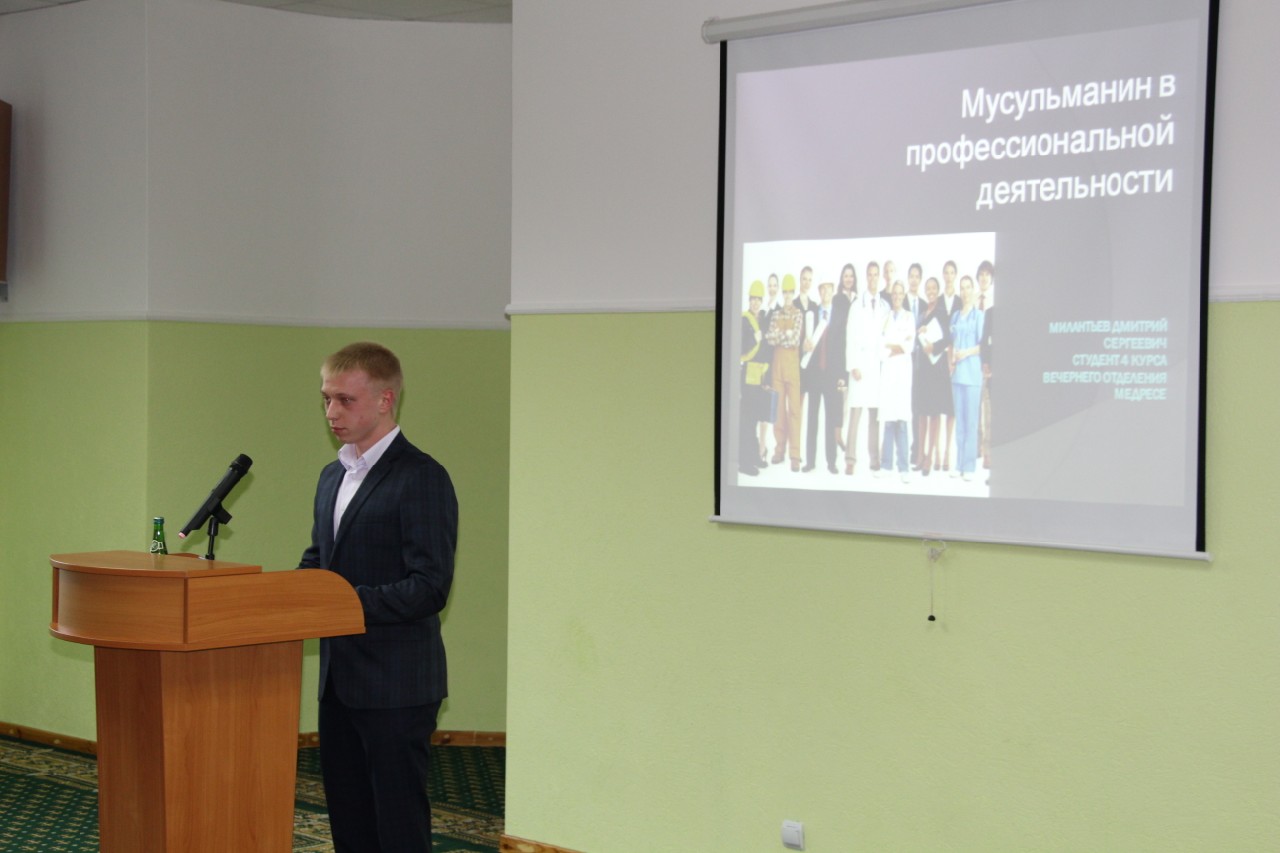 Тему благотворительности в Исламе, как проявления качества милосердия раскрыла Маруга Чакупова студентка 2 курса. Кроме этого, присутствующие услышали интересные выступления Гульфии Тугушевой «Мусульманка на пути к совершенству» и Дмитрия Милантьева «Мусульманин в профессиональной деятельности».