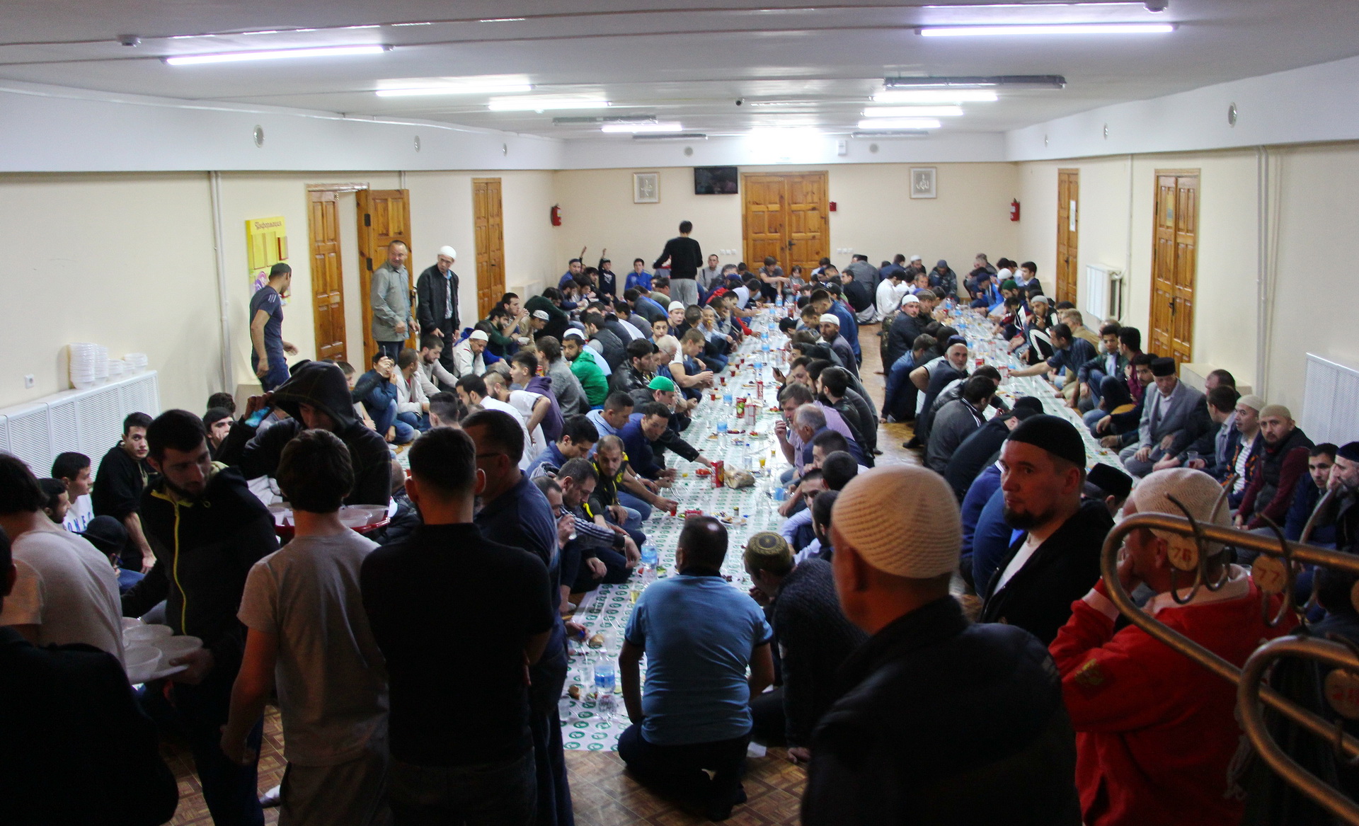 По окончанию ночных дополнительных намазов для всех пришедших в Исламский комплекс был организован сухур — утренний прием пищи перед днем Поста.
