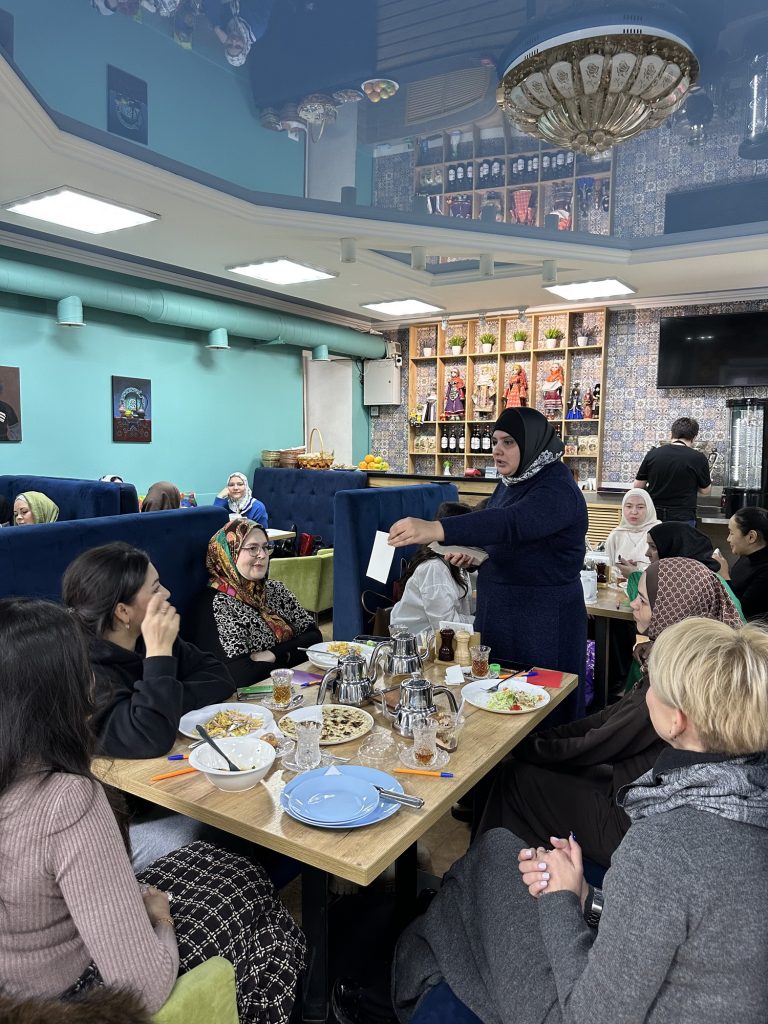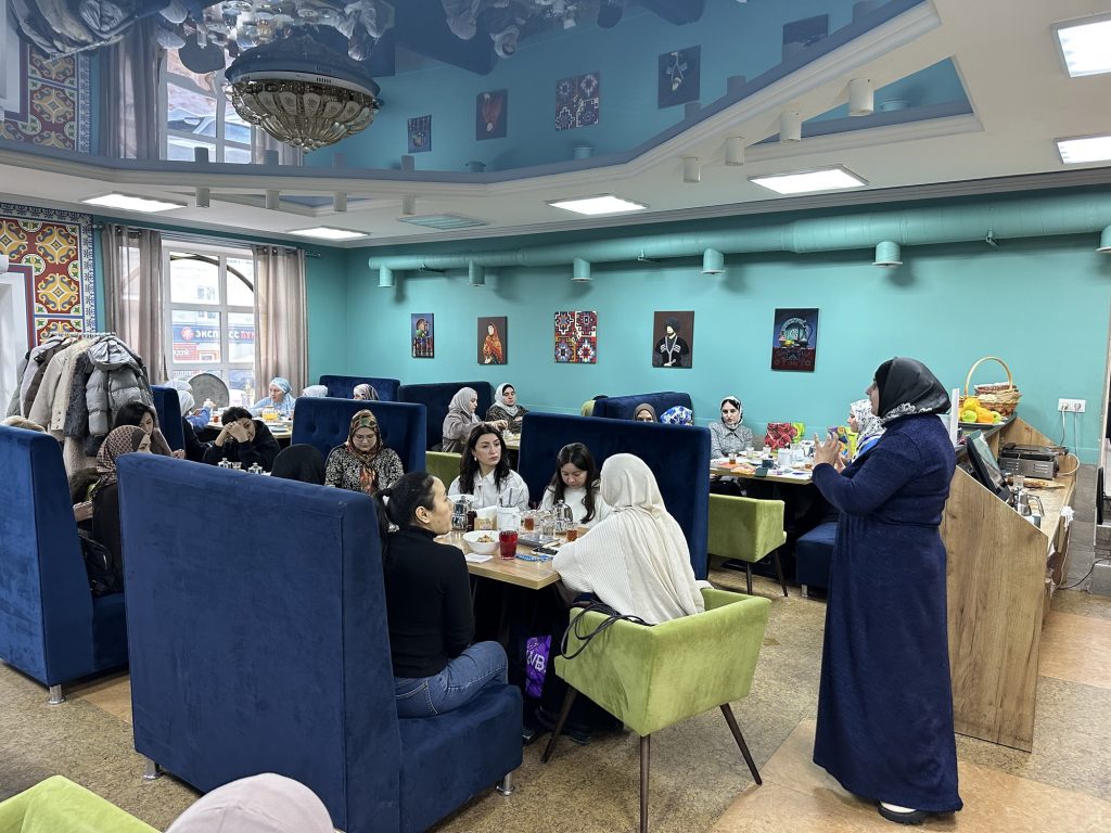 Мероприятие «Подготовь себя к Рамадану» проходило в одном из халяльных кафе Саратова. Несмотря на сильные морозы, женщины собрались пообщаться и получить новые знания и позитивный настрой перед месяцем поста.