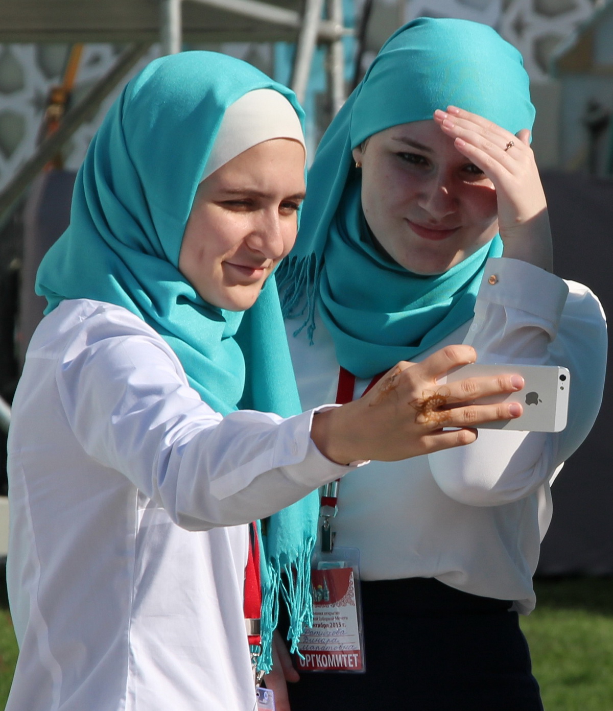 Одновременно на соседних дорожках с большей аккуратностью проходили через металлоискатели почетные гости, которых встречали с улыбками девушки-волонтеры в платках, сочетающихся по цветовой гамме с орнаментом столичной мечети. Всех их, впрочем, как и нас, проводили в соответствующие ложа.