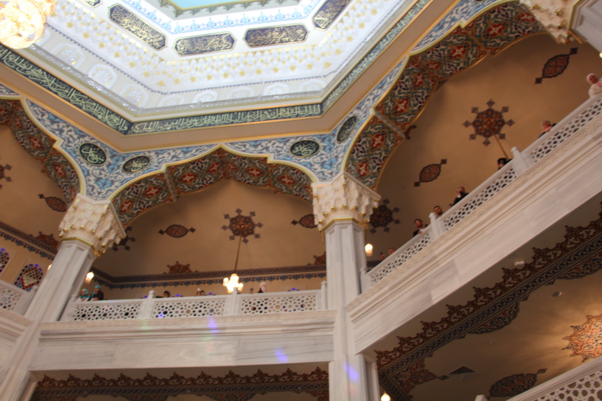 Через некоторое время после отъезда президентов России, Турции и Палестины, всем приглашенным гостям и СМИ дали возможность полюбоваться на чудеса зодчества Московской Соборной мечети изнутри. Шагая по густым коврам, посетителей исламского комплекса встречали красивые узоры на стенах, а поднявшись по широкой лестнице, гости попадали в центральный зал с огромной люстрой, а по бокам один над другим пестрили изящно выполненные балконы. Глаза не могли насмотреться. Здесь же рядом расхаживали чиновники и политики, которые проводили свое время в любовании мусульманским храмом.