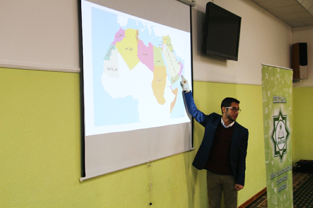 Ребятам он рассказал о разнообразии арабского мира, страны которого, несмотря на свою внешнюю схожесть, имеют много отличительных особенностей в языке и культуре.