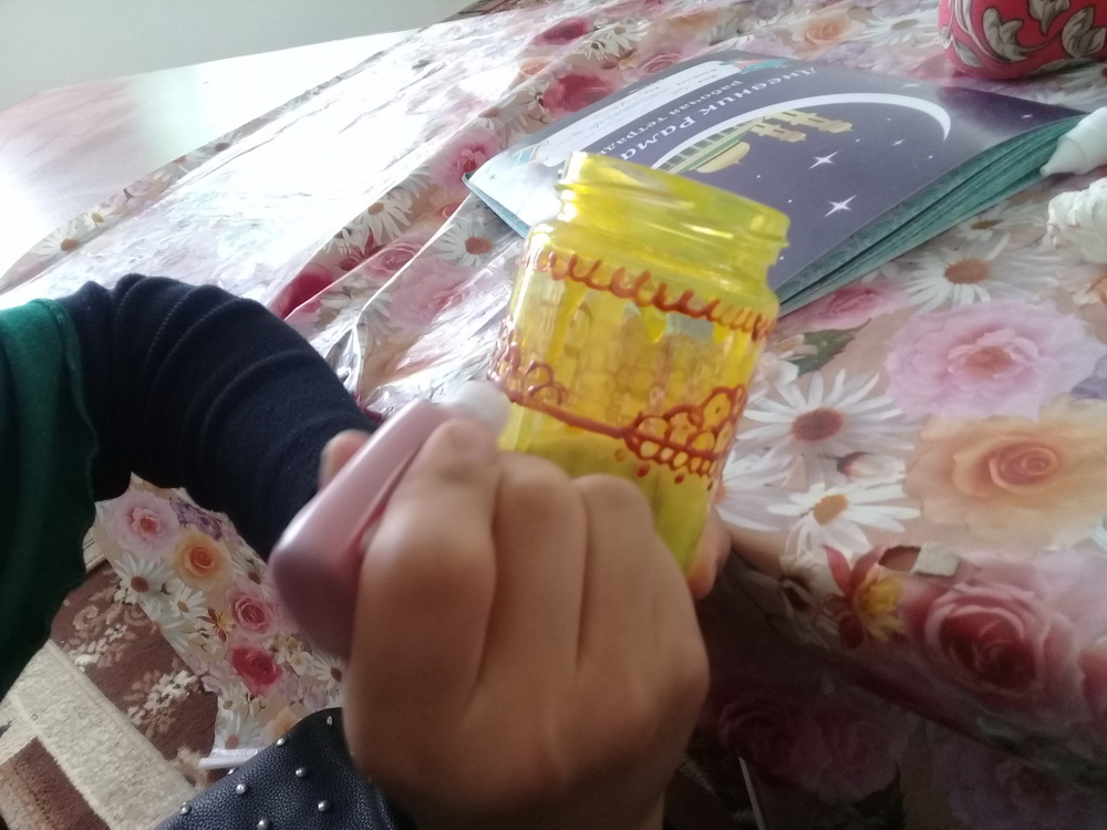 Так, на минувшей неделе дети своими руками смастерили декоративные подсвечники Рамадана. В ходе урока они из обычных стеклянных банок и акриловых красок изготовили настоящее украшение любого праздника. В результате у них вышло пять разноцветных фонарей – зеленых, синих и желтых. На каждом подсвечнике изображены узоры в виде полумесяцев и звезд.