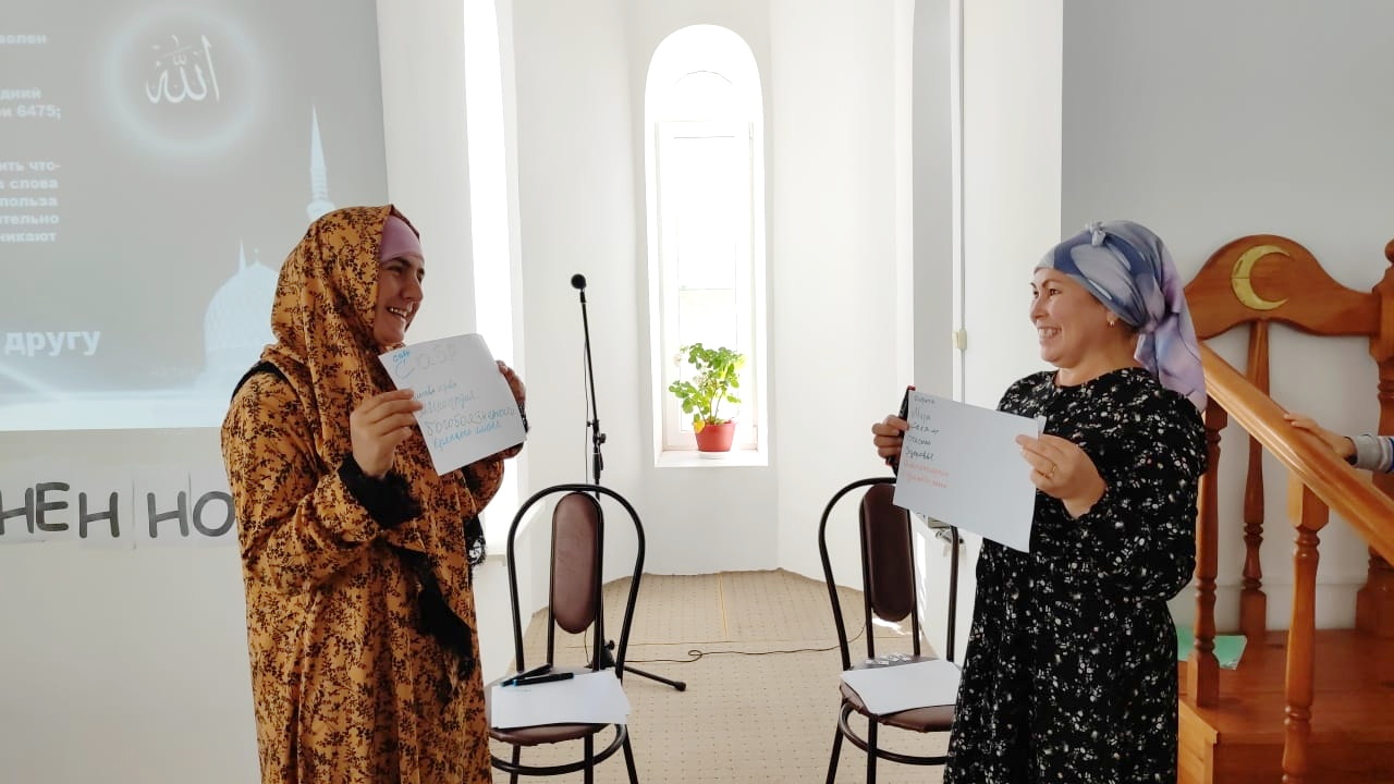 Также последовательницы Ислама составили фразу, которая является важным наставлением: не гневайся! Учились следовать хадису «говори благое или молчи», формулируя пожелания блага соперникам из другой команды. В формате сценки показывали, что нужно сторониться того, что тебя не касается, и желать другим то, что желаешь себе.