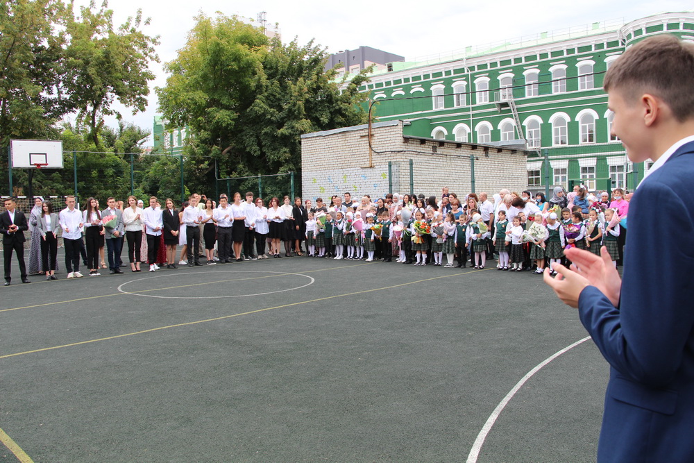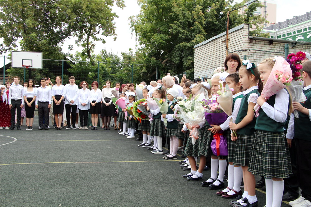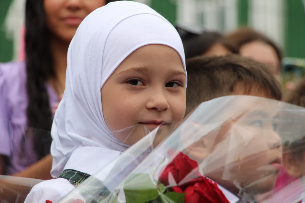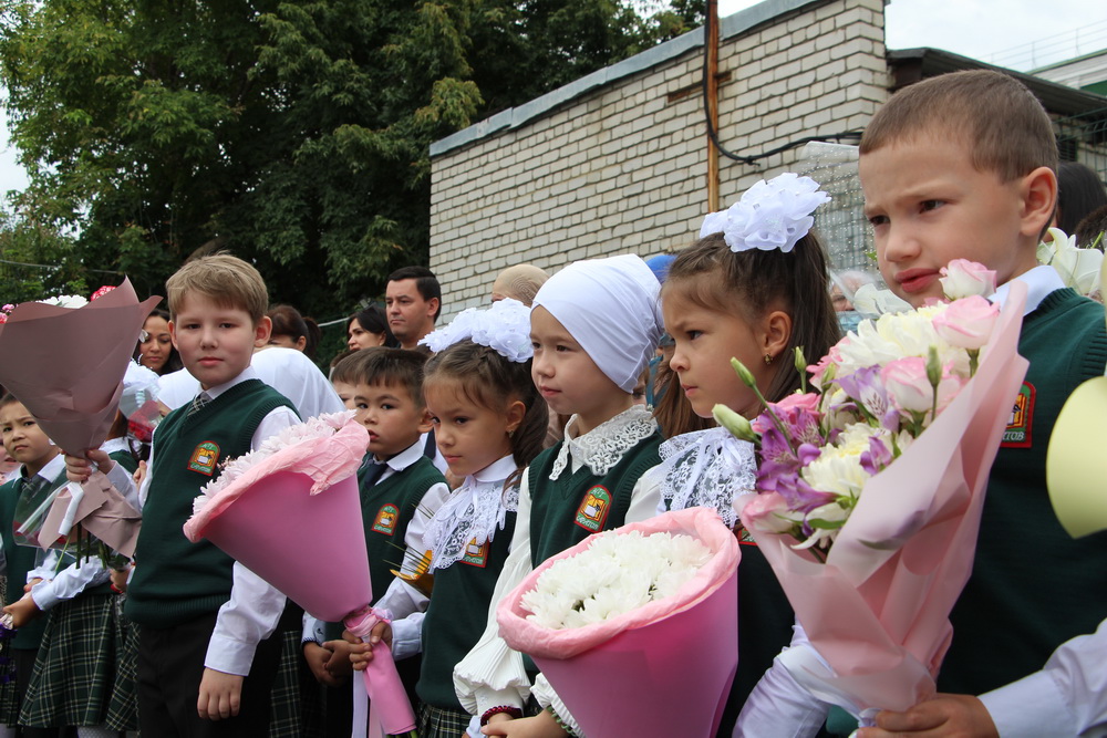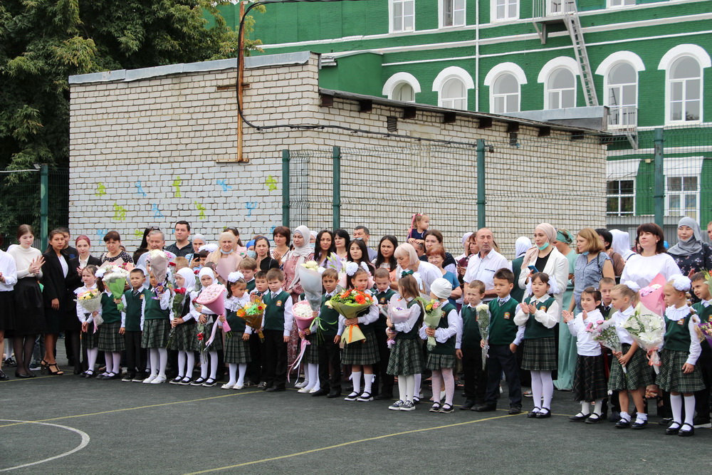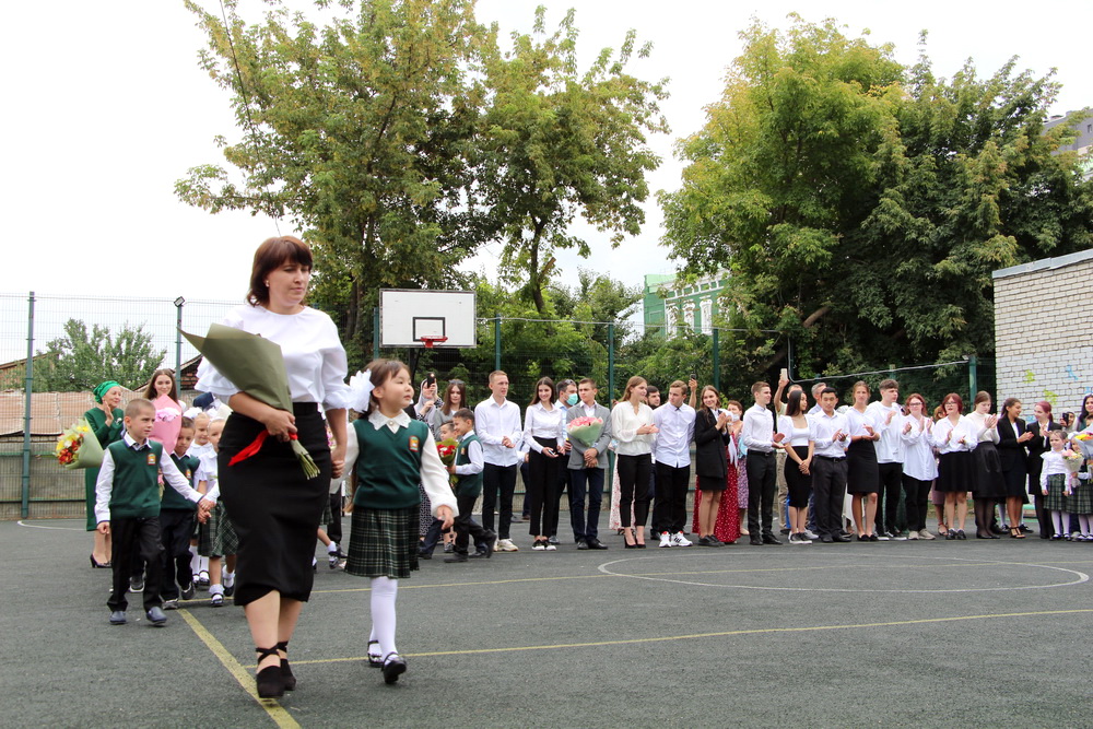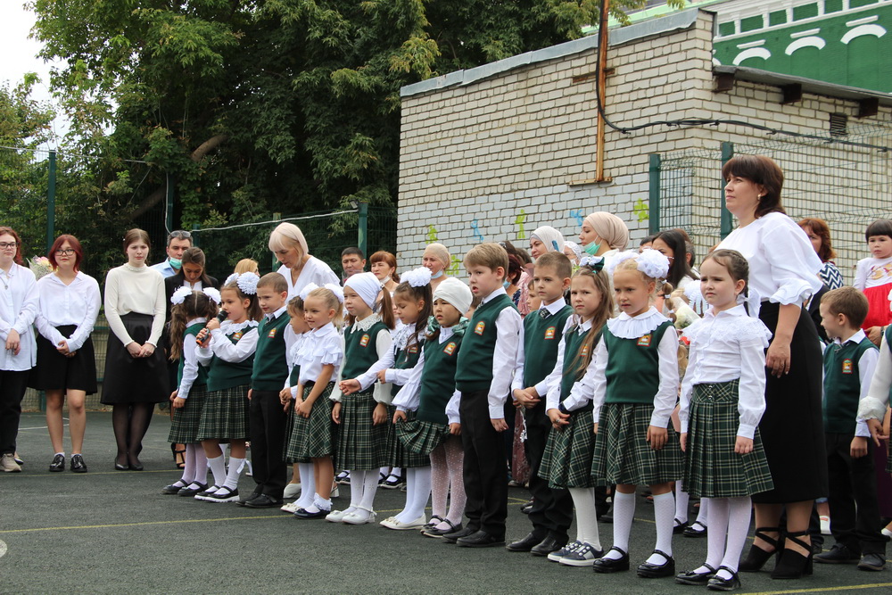 Затем первоклассники прочитали стихи на русском и татарском языках. В завершении торжественной линейки прозвучал звонок, после чего будущие выпускники отвели первоклашек на первый в их жизни урок.