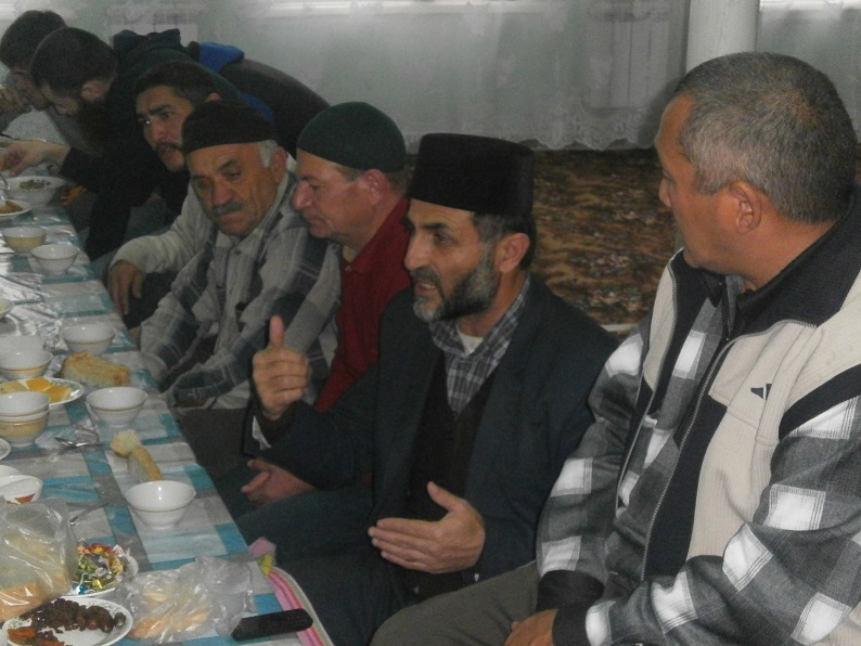 В теплой дружественной обстановке за чашкой чая Марат Садыков, Кайрат Иржанов, Еркен Баксаисов и Нурбулат Жумагазиев рассказывали мусульманам о том, как они совершили паломничество к высокочтимой Каабе, а также о поездке по следам Пророка (мир ему!) в Медину.