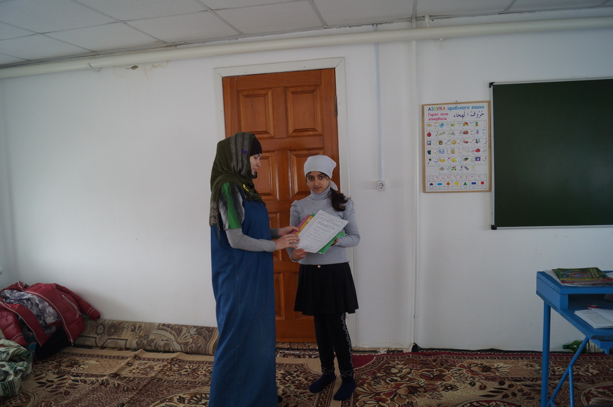 Как сообщила руководитель женской организации «Айша» Танзиля Сарипова, авторы рисунков получили в подарок платки, книги, намазлык и пр.