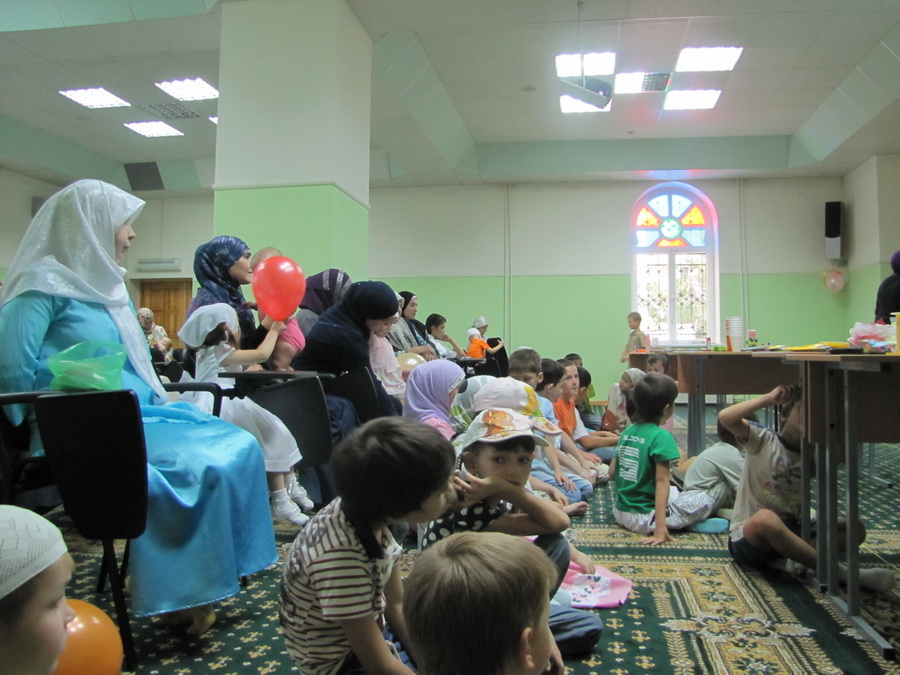 Также детям были заданы множество вопросов на исламскую тематику: Кто был последний Пророк на Земле? С какого месяца начинается новый год по мусульманскому календарю? В какое время суток нельзя есть во время поста? Все дети пытались первыми ответить на вопросы, тянули руки, прыгали от радости, что знают ответ.