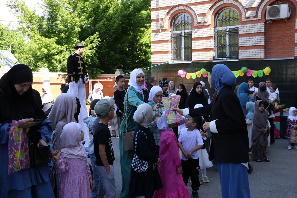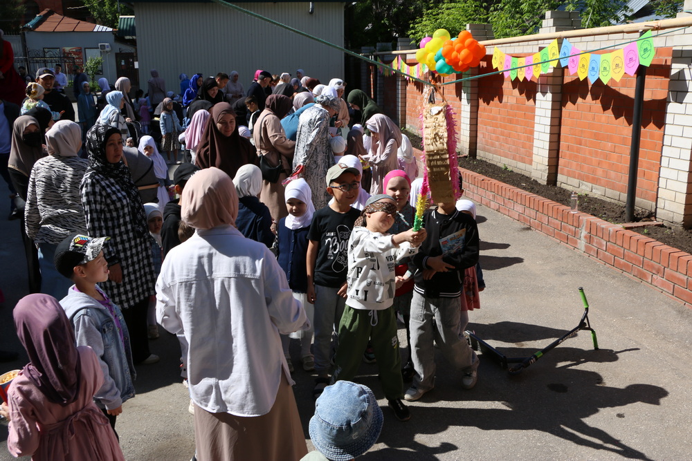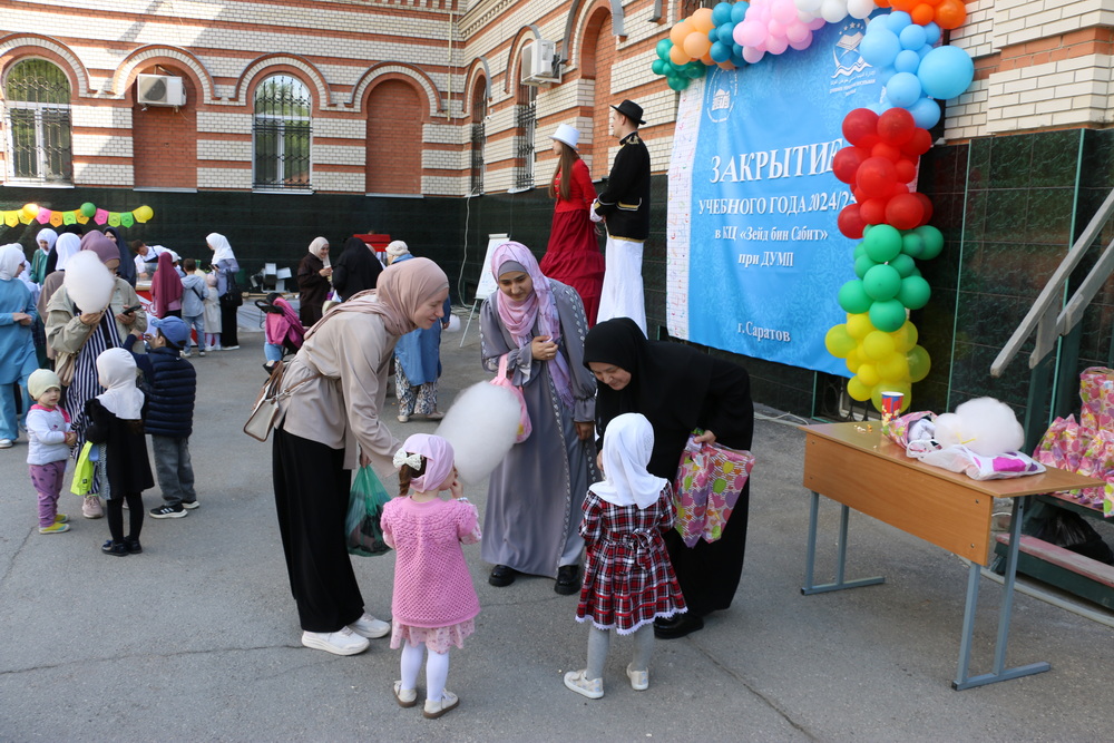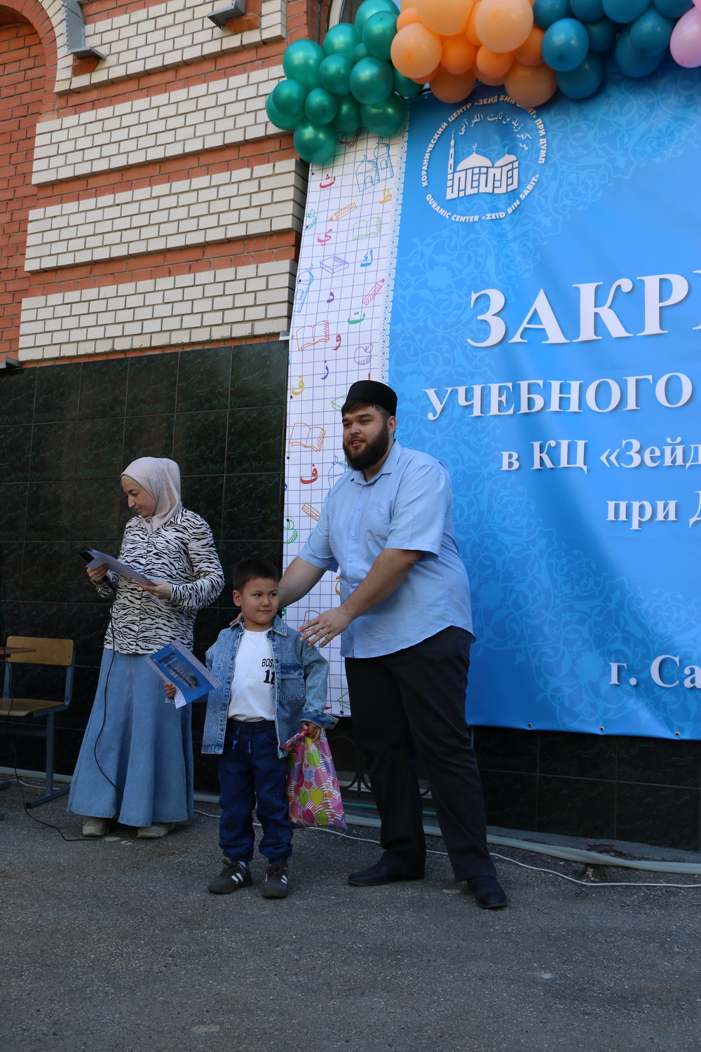 Юные учащиеся и их родители собрались во дворе Саратовской Соборной мечети, где все было готово к празднику. В его начале состоялось вручение свидетельств юных чтецов и чтиц Священного Корана выпускникам трехдетских групп (малыши 2020 года рождения). Мальчики и девочки с года посещали занятия, где в игровой форме учили суры и буквы арабского алфавита. Теперь их наградили грамотами и подарками.