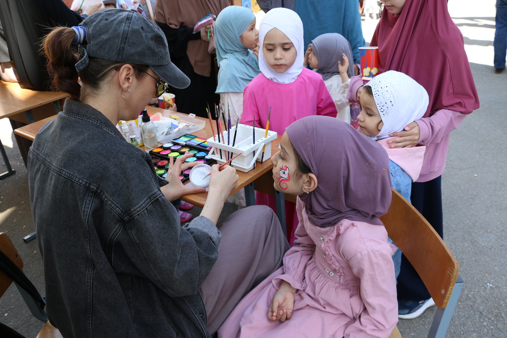 Затем всем ученикам коранического центра предложили весело провести время на ярмарке. Здесь с помощью накопленных в течение года за прилежную учёбу «динариков» дети покупали сладости, игрушки, канцтовары и др. Также малыши отведали попкорн и сладкую вату, поиграли с аниматорами и сделали аквагрим.