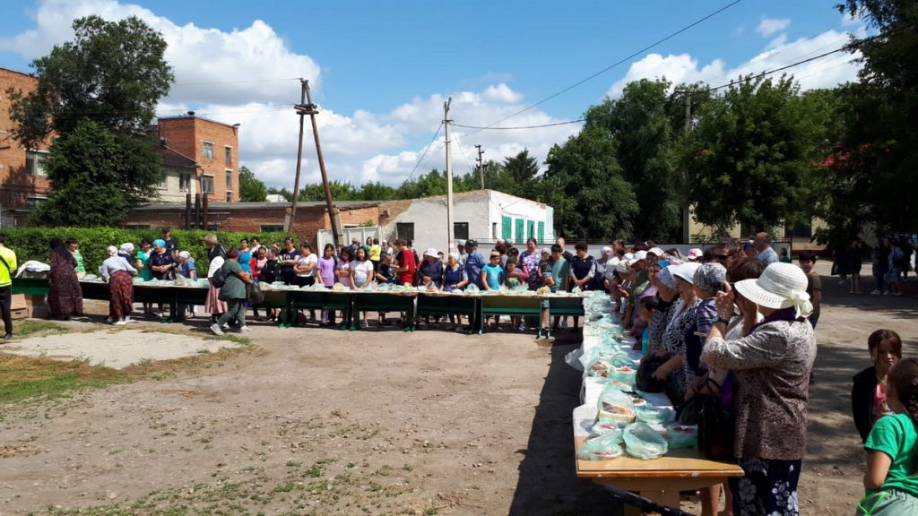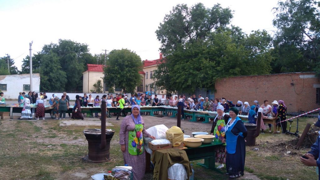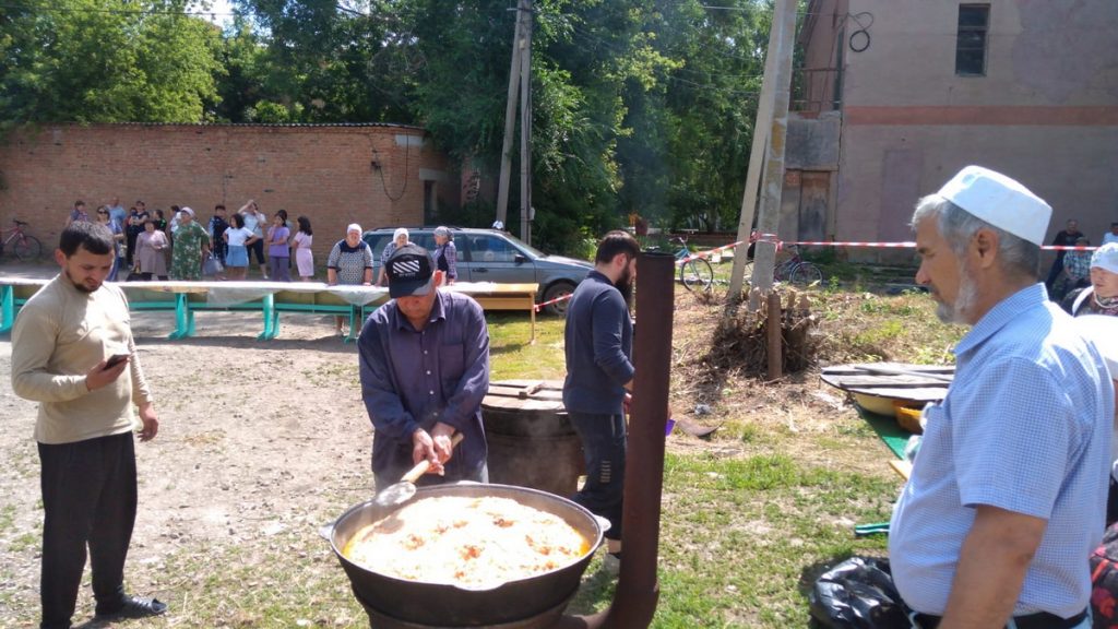 «В двух больших казанах был приготовлен ароматный плов из мяса жертвенных животных. Готовили его специально приглашенные братья из Саратова. Пожертвования на мясо жертвенных животных и угощения делали не только местные мусульмане, но и наши земляки из других районов и областей страны», — рассказал Руслан-хазрат Халиков.