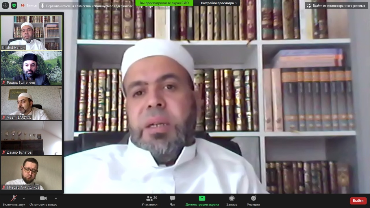 В ходе онлайн-заседания с лекцией на тему «Основные принципы подготовки и издания богословских заключений Исламским советом по фетвам Палестины» выступил председатель Совета по фетвам Палестины, доктор шариатских наук, шейх Машхур Фаваз. Заместитель генерального секретаря Европейского совета по фетвам и исследованиям, доктор шариатских наук, шейх Халид Ханафи из Германии подготовил доклады на тему «Распространенные ошибки в фетвах. Вынесение богословских заключений на основе единичных фетв» и «Соблюдение целей Шариата в подготовке и издании богословско-правовых заключений (фетв)».