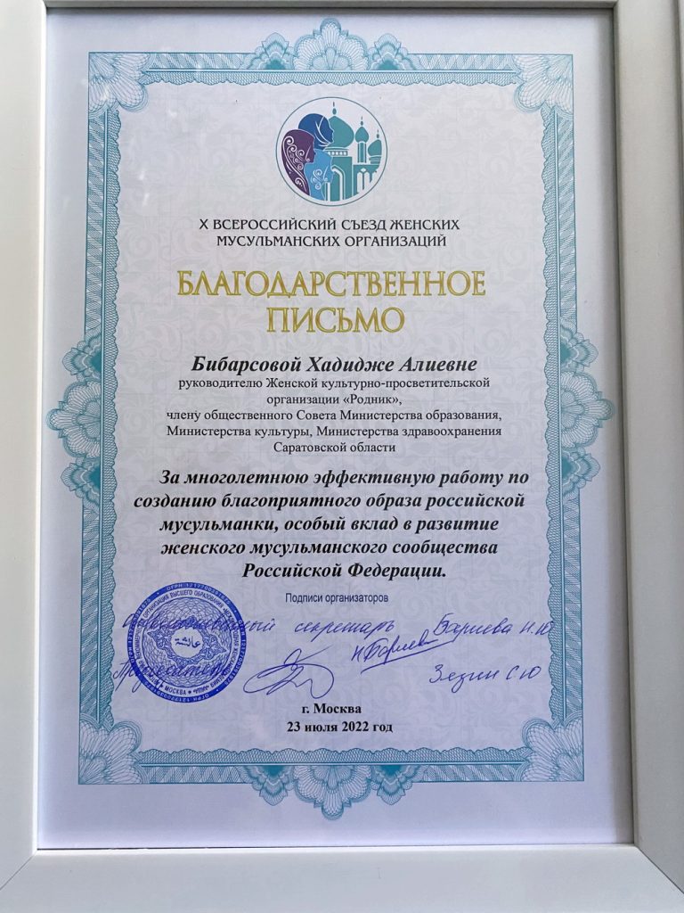 Кроме этого, было принято решение учредить ежегодную награду съезда – медаль «За особый вклад в развитие женского мусульманского сообщества РФ».