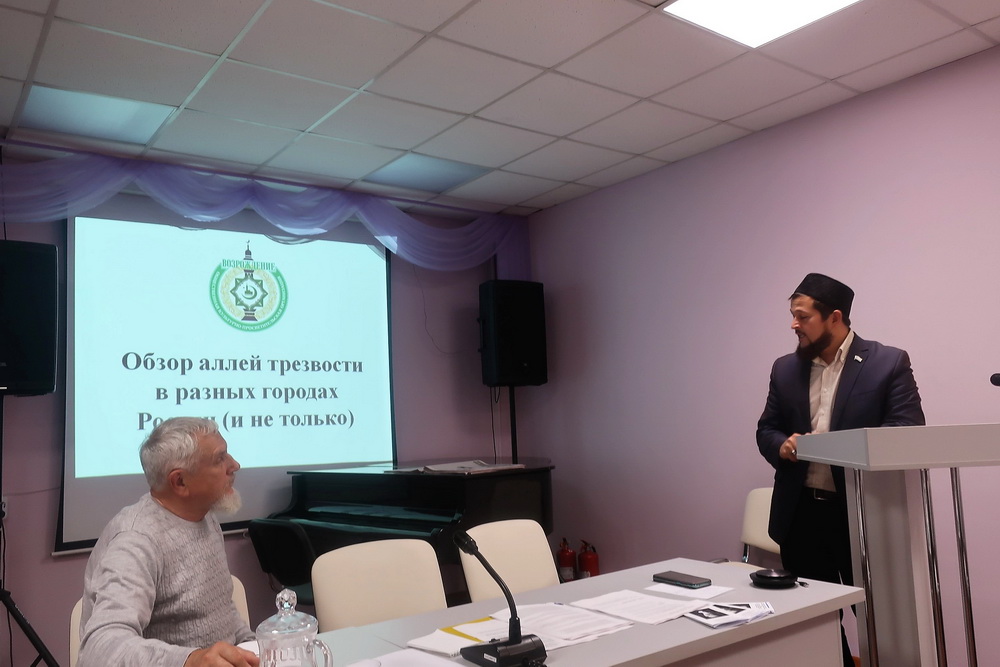 Среди участников мероприятия был руководитель культурно-просветительской организации «Возрождение» Рустам-хаджи Абдульманов. Он выступил с докладом «Обзор аллей трезвости в разных городах России».
