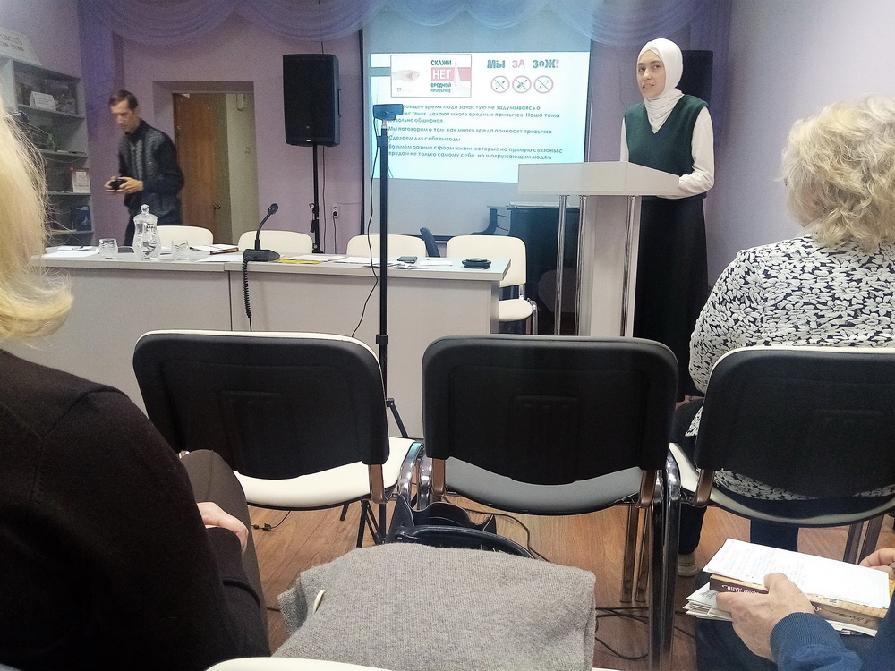 Активистка «Возрождения» Зулейха Абальмасова подготовила  доклад  «Скажи вреду: «Нет!». В своем выступлении она напомнила о пагубности вредных привычек и показала альтернативу им в интеллектуальной, духовной, общественной и других сферах жизни.