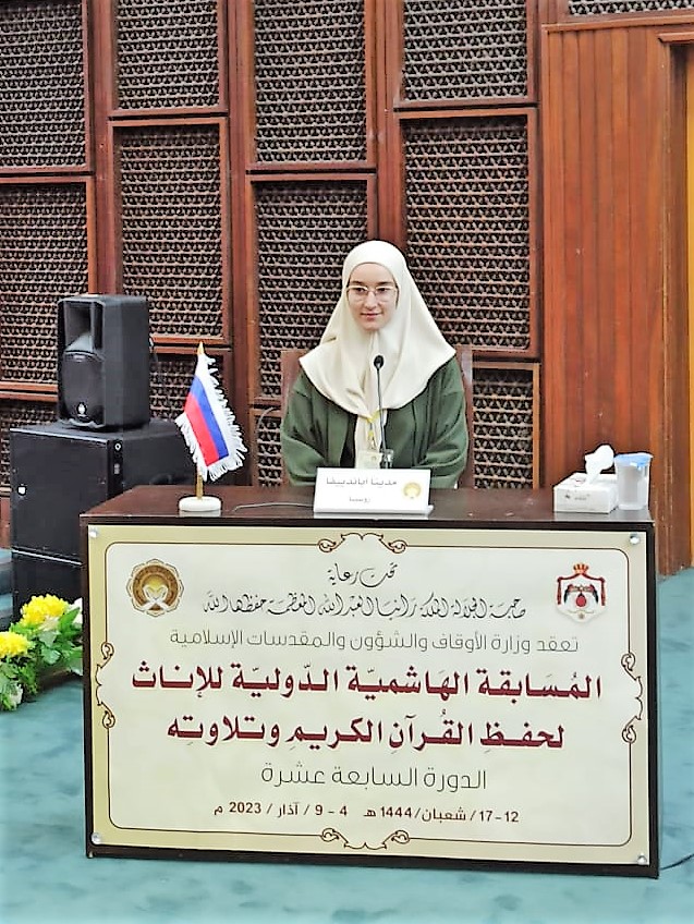 По направлению председателя ДУМ РФ муфтия шейха Равиля-хазрата Гайнутдина нашу страну представляет преподаватель коранического центра «Зейд бин Сабит» при ДУМП Мадина Апандиева.