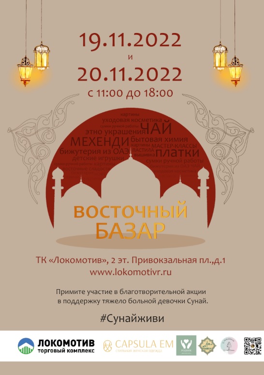 19 и 20 ноября 2022 года в г.Саратове пройдет благотворительный Восточный ванди базар. Организаторами выступают ТК Локомотив, магазин женской одежды «Capsula EM» и женская организация «Родник».