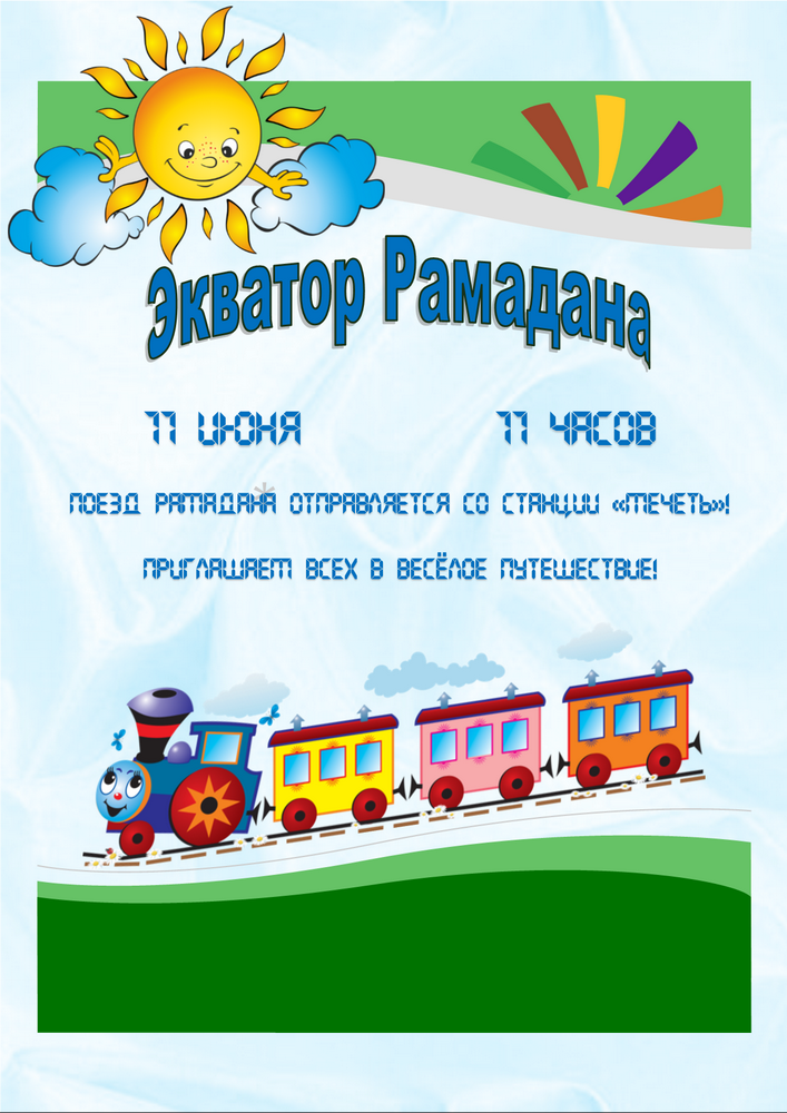 В ходе мероприятия дети примут участие в увлекательном путешествии на «поезде Рамадана». В пути их ждут сказочные герои, веселые конкурсы, неожиданные сюрпризы, а также загадки и викторины.