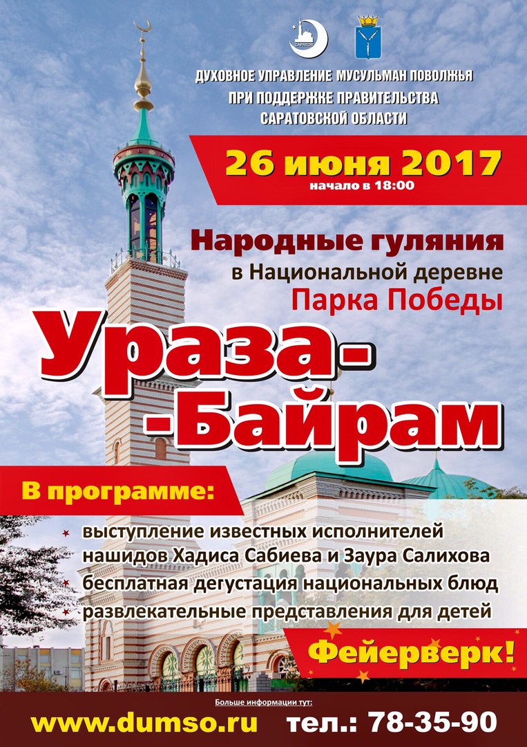 26 июня в Национальной деревне на Соколовой горе г.Саратова состоится масштабный и яркий праздник «Ураза-байрам для всех-2017!».